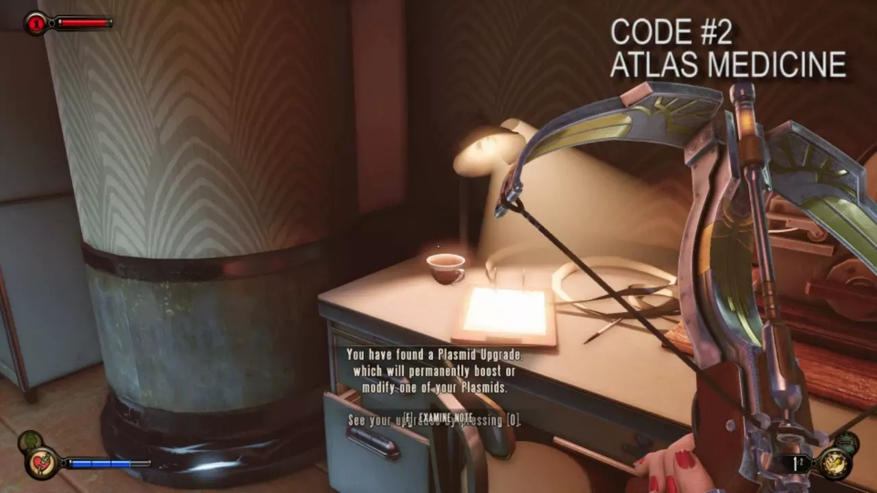 密码1-4(获取音频日志23所需) 密码1位于首次遭遇大老爹的区域,在名为“深海球形舱豪华店”的商店后桌。