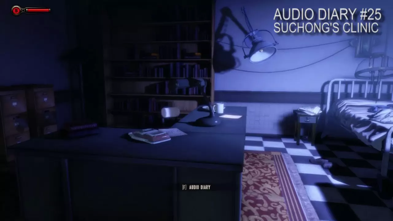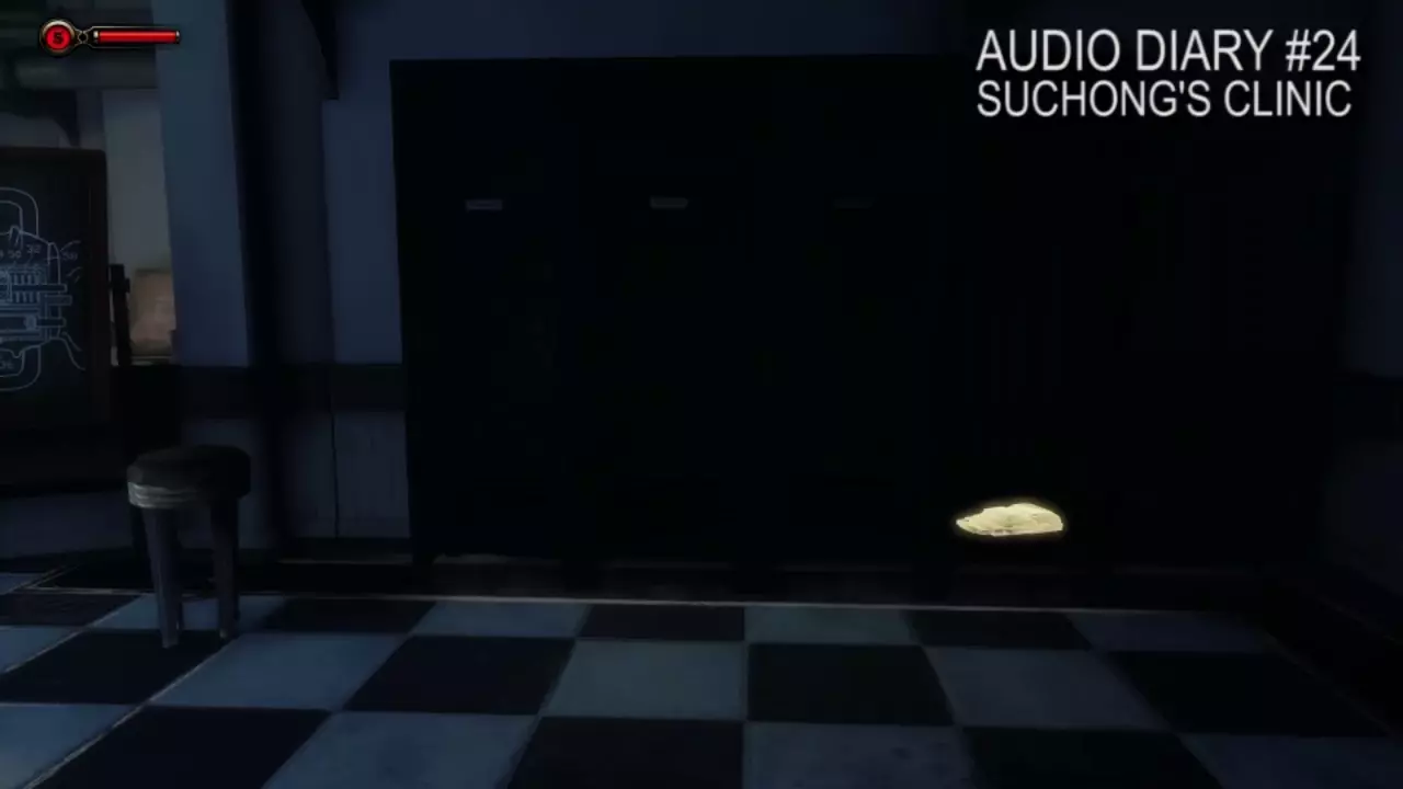 日记#24位于苏崇的诊所内。进入诊所后,看到大老爹(Big Daddy)的服装就向右转,它在其中一个储物柜里。