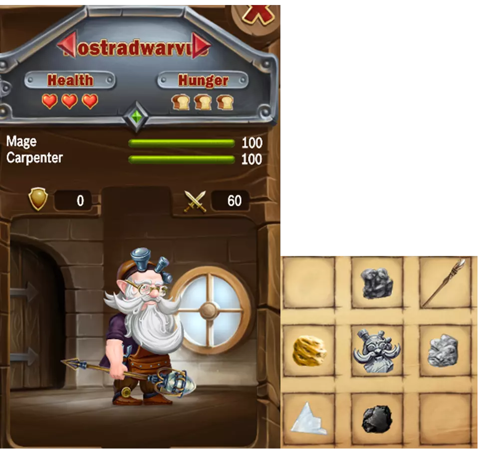 - 津云(Tsun Ukun) + 攀爬能力非常敏捷 + 可同时携带大量物品 - 想要用泥土、沙子或石头替换矿物却无法做到。因此会一直站在原地无所事事,直到其他矮人执行该任务。