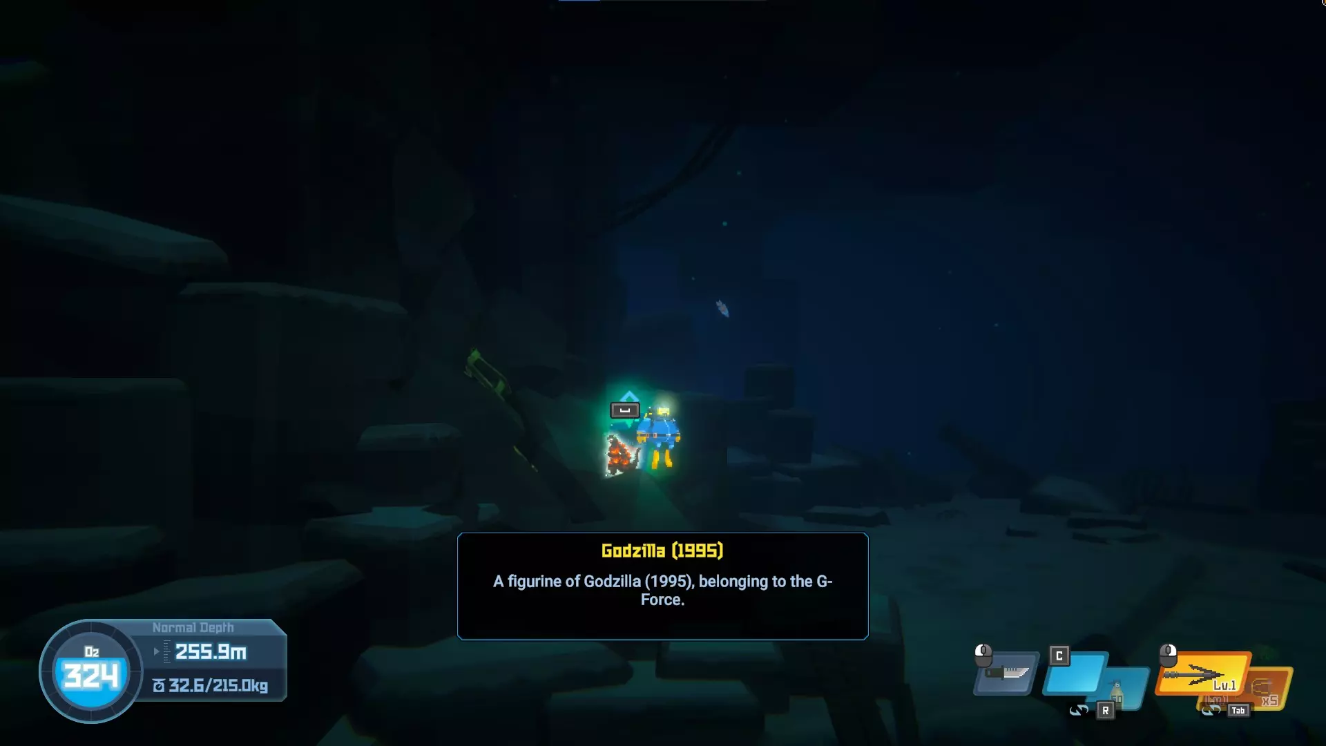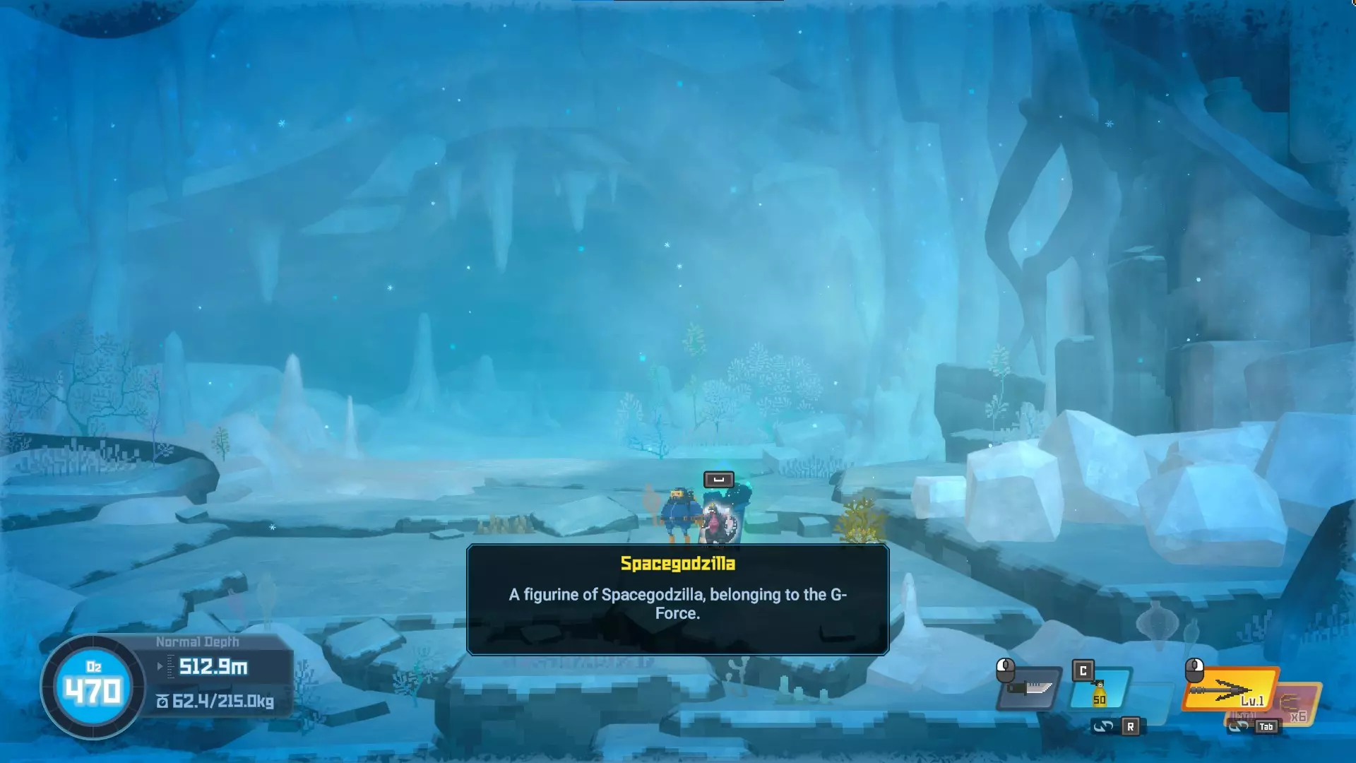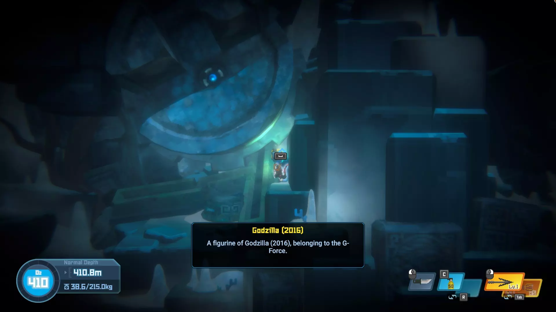 位于水下湖。一直游到深处,你会看到雕像。10/20 - Little Godzilla