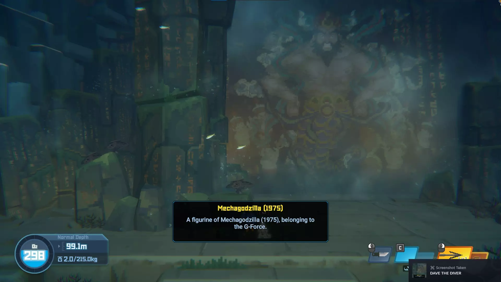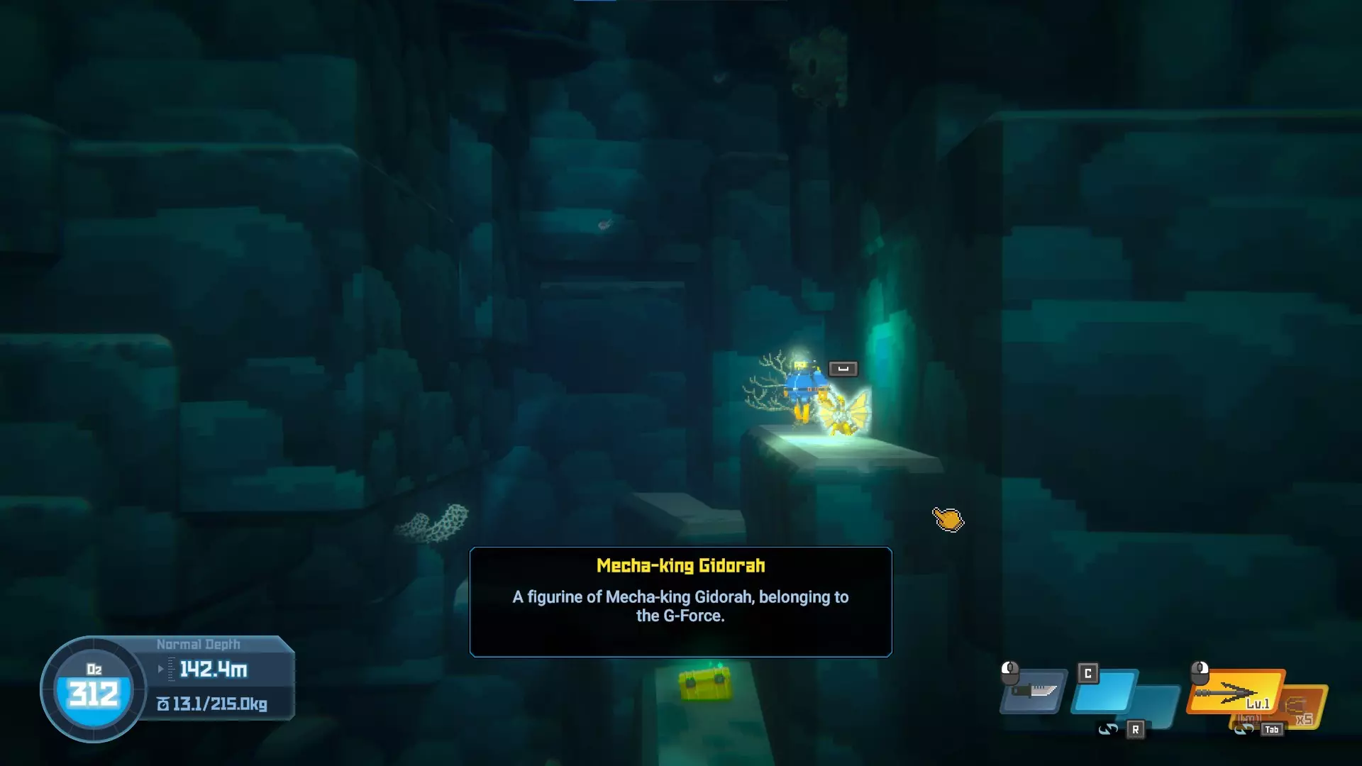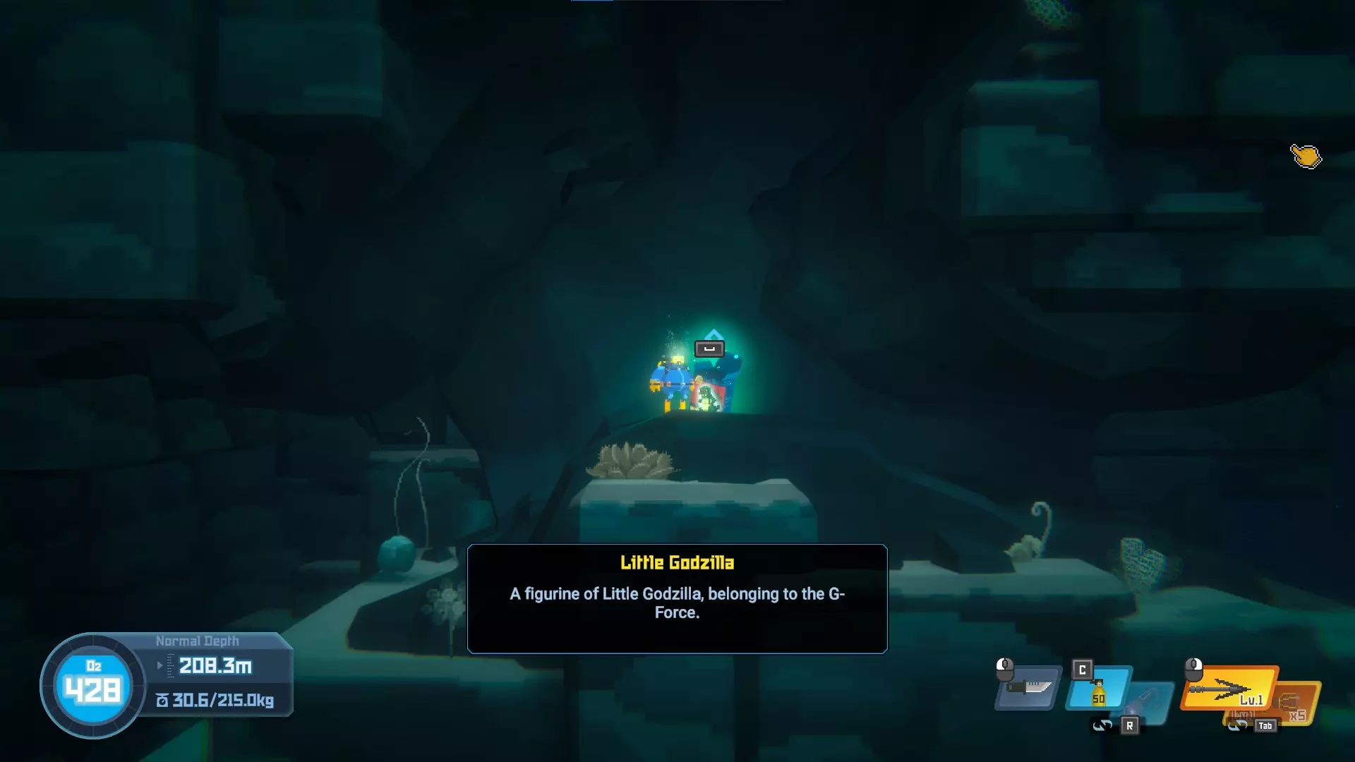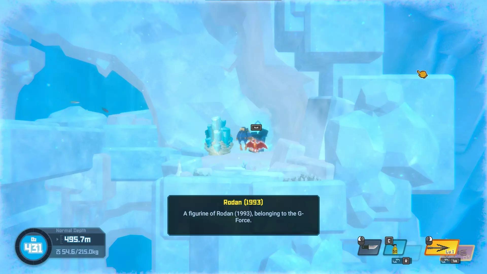 位于水下湖。一直游到深处,你会看到雕像。10/20 - Little Godzilla