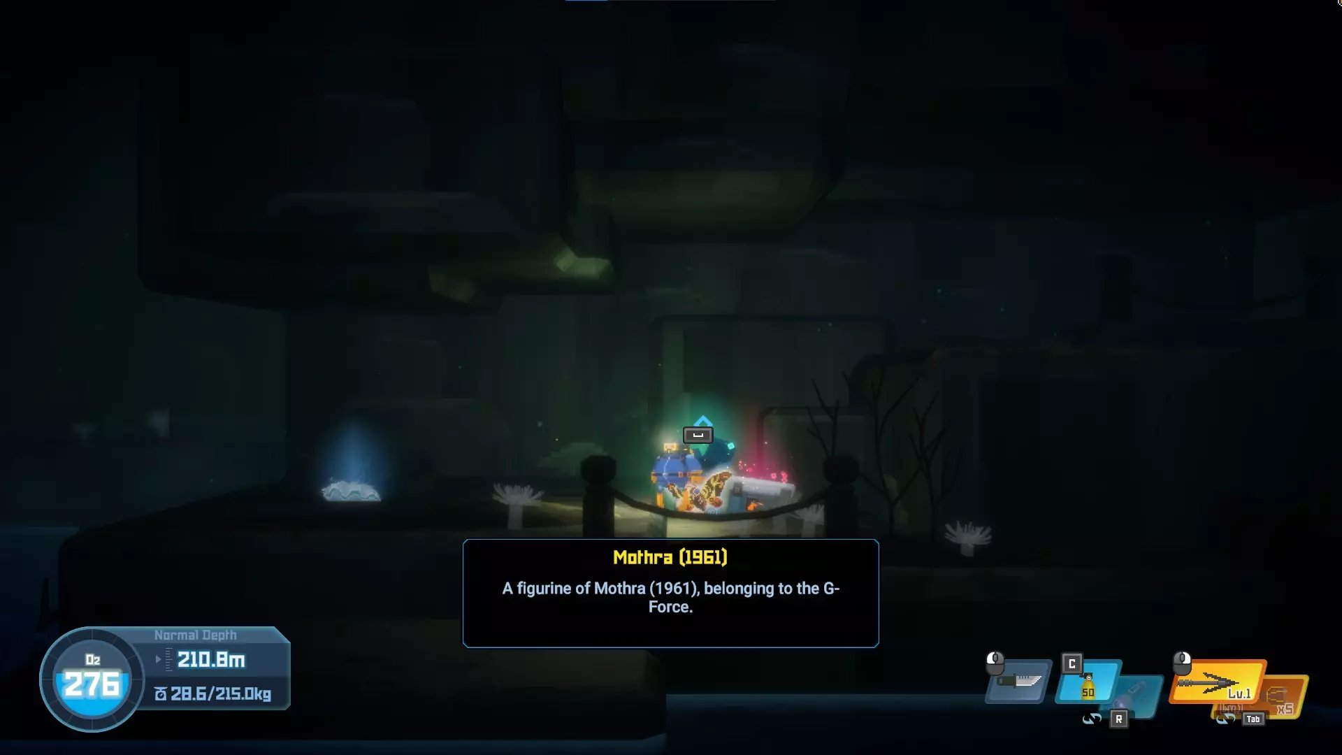 位于深坑深处第二层的中间区域,那里有一具巨大的鱼骨架。小雕像就在那片区域附近。 09/20 - 摩斯拉(1961)