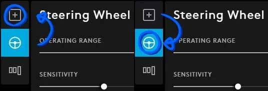 如果你的方向盘没有反应,可以尝试点击左上角的小方块加符号图标,然后再点击回小方向盘图标,可参考下方图片。