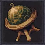 效果:可在地表每天激活一次。若在白天激活,可获得持续1440回合的生命汲取或坚韧效果。若在夜间激活,可获得持续2880回合的能量汲取或接受效果。 尺寸:2x3 价格:600 背景故事:一个异常巨大的球形墨晶,其精细抛光的表面刻有详细的星图。这件 artifact 曾在哈松先知的仪式中占据重要地位——直到在最后一次光辉战争中被埃伯特国王的士兵夺走。