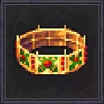 效果:在背包中时,获得【+15%武器伤害】和【-10%受到伤害】 尺寸:4x2 价格:600 背景故事:征服菲尔恩山麓是奥尔多王国的重要里程碑。这幅挂毯由一位无名织工创作,以纪念那场伟大的胜利,此前一直被认为已遗失。传说拥有它的人注定会成就伟业。 无畏者贝诺尔之冠