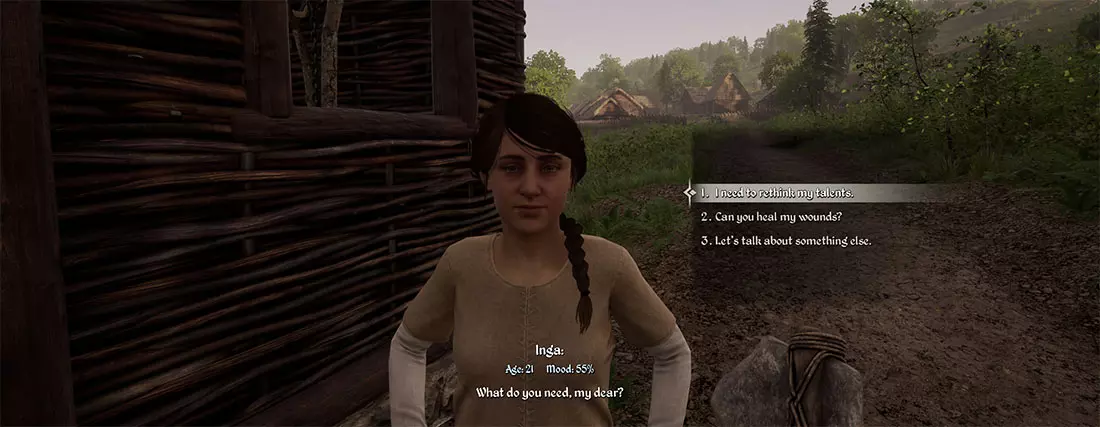 MarriageThe main character is male and one of the gameplay mechanics is to marry and create an heir that can continue running the village when the main character is too old. It can take a significant amount of time to court a prospective woman and your dialog choices will determine their affection level toward you. You will want that affection level to be as close to 100 as possible before asking for their hand in marriage. Some dialog options will increase affection level, others will decrease it. If you choose a dialog option that increases affection, you can continue the conversation up to two more times, at which point you will need to wait until the next day to pursue more. If you choose a dialog option that decreases affection, no further courtship dialog is possible until the next day. Because it can take an entire year (or more, depending on whether you choose poorly during dialog), it is worthwhile to start the process early and devote a little bit of each day to courtship dialog. Once married, your wife can provide healing as well as help you reset your skill points. You will also be presented the option at some point to create a child, an heir who will continue the gameplay after your character has aged beyond the point of adventuring. My character's son is now 1 year old, so I have not reached a point to witness the mechanic of the heir taking over. Some folks have encountered bugs and not received the dialog option to create an heir. Preparing your Village for VillagersNPC Villagers require some basic necessities in order to survive. In addition to housing, you should also ensure you have a Resource Storage and a Food Storage before inviting anybody to join your village (more on the invitation process in the Villagers section below). Initially, you'll need to stock the chests with food and wood yourself, until you've got the Villagers assigned to professions that will help in this regard (Namely Field Hand, Hunter, and Lumberjack). Cooked Meat does well to fill up the chest in the Food Storage. For wood, absolutely convert logs into firewood through your 'Q' crafting menu. It fills the need for wood significantly better than logs and sticks (Note: A lumberjack will only provide Logs and sticks. It will fall to you to periodically hop into the chest and convert the logs to firewood). Have at least one small house in addition to your own. If you've been spending time raising your Approval with NPCs in preparation to invite them to your village, you may want more than one house ready. Keep in mind, the number of buildings you can have at a given time is capped by your Dynasty Point score. Your buildings, and your maximum, can be viewed on the Management tab. When Villagers join your village, you can use the Management tab to assign them housing and professions. The chest in whatever building you assign a Villager to will need to have the proper tools for them to do their job. For instance, a lumberjack needs an axe, so stock some axes in the Woodshed chest. A farmer will want a hoe, scythe, and sack for seed, so place these in the chest in the Barn (note: "Field Hand" is the profession that actually sows and harvests). VillagersOnce your village has enough Dynasty points and buildings, you'll want to invite villagers to move there. Villagers require a house, a constant supply of wood via the Resource Storage building, and food via the Food Storage building. Much like courtship dialog, villagers seeking a new home will require their opinion of you be at least 70% Approval (default upon meeting them is usually 50%). You will want to begin talking to them early on, even before you're ready to invite them, as like courtship dialog, you can at most have 3 successful dialog attempts with a person before having to wait until the next day. Once you meet or exceed 70% in their opinion of you, you can invite them to your village. Provided you have enough Dynasty points, they'll agree. TaxesTaxes are due to the Castellan, Unigost, each Spring. I don't know the equation, but the total is based upon land farmed and number of villages (it is visible on the Management tab). If you are unable to pay the tax in a given Spring, you will incur that tax as a debt. That debt, plus your normal tax, will be due the following Spring. Being unable to pay incurs a Dynasty Point penalty (I do not know how much). Receiving -10,000 Dynasty Points will have you exiled from the valley and you will lose the game. Fun fact: If it's the last day of winter and you simply don't have the coin to pay your tax, make a bunch of Knives and sell them. It isn't super profitable but it'll work in a pinch. If you've got the goods to cook, dipping into your food stores and cooking a stack of meals will also earn some decent coin. If you've been selling to the merchants so much through the winter that they're out of coin, you'll have to hike to another town - the good news is their inventory and purse reset each season. Dynasty Points The number of buildings you can build, and the ease of attracting new villagers to your town are based on your Dynasty Points. Initially you will only be able to build 8 buildings. At the 500-point mark, that will increase to 16. At the 1,000-point mark, it will increase to 20. You earn the first five hundred or so Dynasty Points simply by advancing through the game's Main Quest line. After that, additional points can be earned by completing the '!' quests that pop up. They award very few points (2 to 5 in my experience), which can make the grind from 500 to 1000 (a main quest requirement at one point) a bit long. Like other things, I imagine this will be addressed as they continue to develop the game. When you go to deliver your taxes for the THIRD time, the Main Quest line will continue as Unigost asks you to help him collect these taxes. Upon completion, you'll be awarded 200 Dynasty Points. Depending on your choices in conversation with him, you may lose 50 of those points. I gained an add