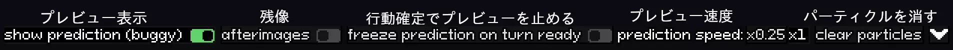 预览显示:可开启或关闭预览功能。 残像:开启后,预览会在下次选择时机时,在画面上留下两名角色的残像。有助于详细了解角色位置。 行动确定时停止预览 预览速度:可将预览的播放速度设置为四分之一速或正常速度。 消除粒子:这不是设置项,而是用于消除当前画面中粒子效果的按钮。当画面因效果过多而显得杂乱难辨时使用。 另外,预览有一个相当重要的功能,即通过颜色来显示角色是否获得了下次选择机会。实际看一下会更容易理解: