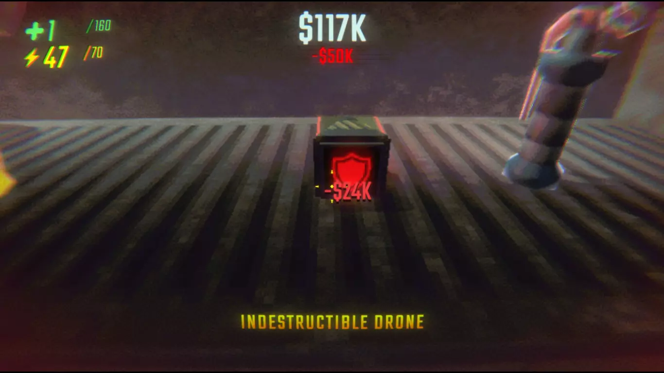 该物品的攻击力与小丑相同。若击中表面,会发射一道能量光束,造成大量伤害,对队友、物体和怪物均会产生影响。它的使用难度极高。 商店 每通过一个关卡后,你会自动进入商店,在这里可以花费金钱升级你的角色、武器、无人机、推车等。 商店的库存大多是随机的,但医疗包、升级道具和能量水晶始终有售,其他物品则每次进入都会有所不同。 如果你在关卡中丢失了物品,只要成功完成该关卡,它们就会自动返回你的飞船/卡车。 能量水晶