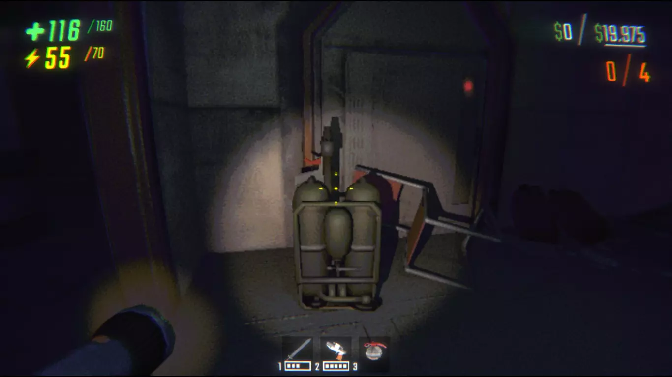 所有提取完成后,船只/卡车会自动为你恢复25点生命值。 温暖拥抱:如果你和他人一起游玩,你或队友可以互相转移生命值。只需站在对方身后(面向对方后脑勺)并抓住他们即可。 复活方式: 1. 提取点复活:将他们的头颅带到最近的激活提取点并完成提取,即可复活他们。如果他们在提取刚结束后死亡,这可能会带来很大麻烦。 2. 船只/卡车复活:完成所有提取后,将他们的头颅带到船只/卡车处。这会用复活他们来替代你的自动治疗。 3. 关卡完成复活:如果其他方法都行不通,只需完成关卡。游戏会自动复活他们。秘密商店 和普通商店一样,秘密商店会提供两个随机物品供购买。 进入秘密商店的位置和方法: 入口总是位于医疗包区域的两个格子之外。 要“打开”商店,只需跳跃并按下天花板格子上的抓取按钮。 到达入口的方法: 使用“冲击波手雷/地雷”(但比较棘手)。 使用“羽毛无人机”或“零重力无人机”直接跳入口。 让队友在你处于小形态(Q键)时把你举起来。
