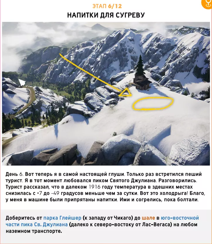 6. 给瑟格沃的饮品 阶段6/12 在本阶段,我们需要前往圣朱利安峰东部的小屋。