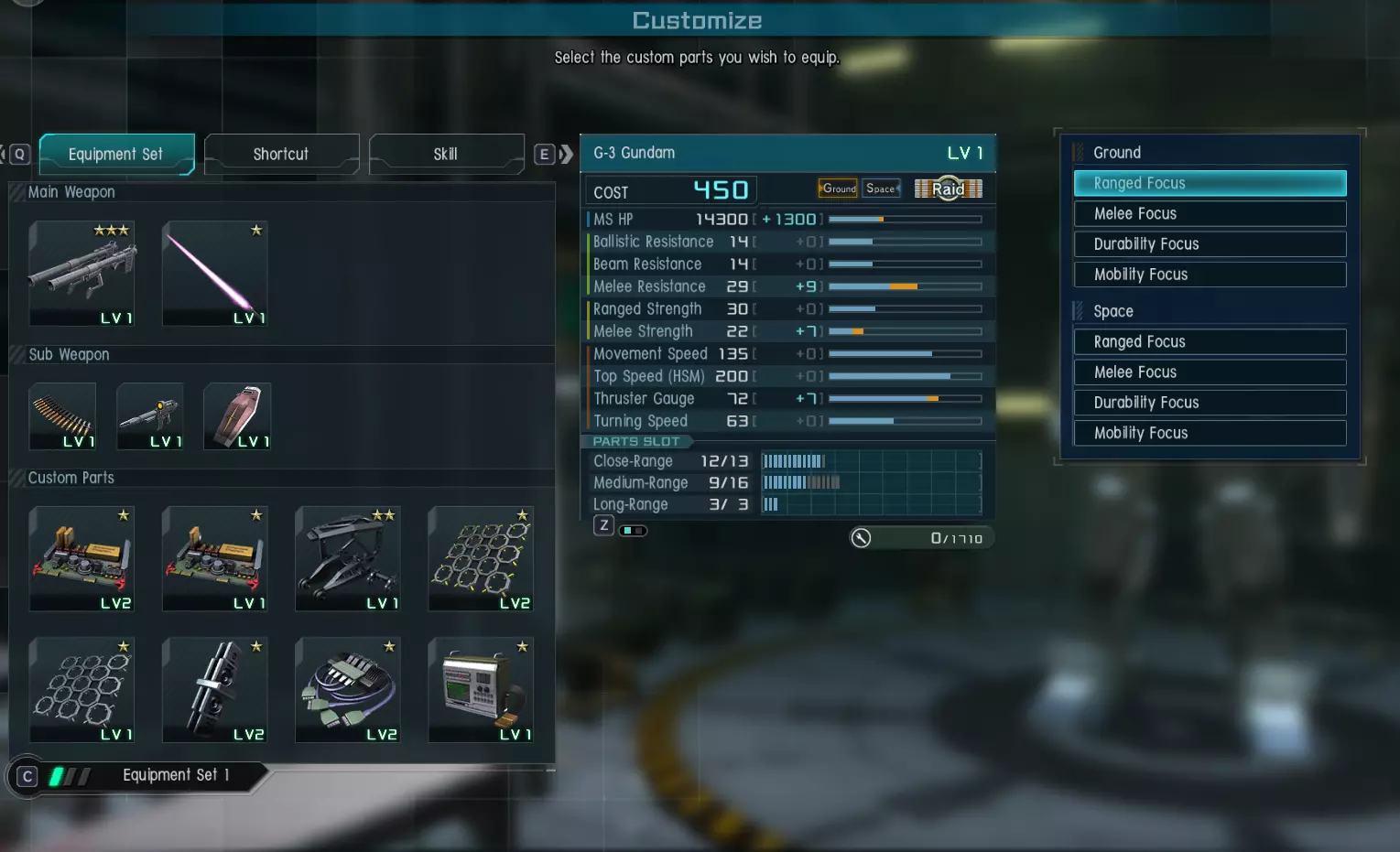 接下来你需要将它们装备到你的MS上。你可以通过自定义选项进行操作,另外,如果你不知道该如何搭配,不用担心,游戏针对每个类别都内置了自动排序系统。