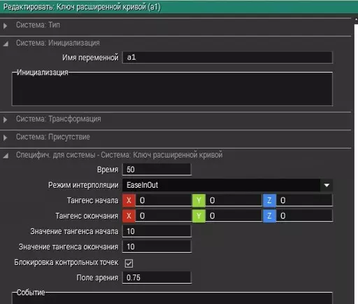 我有自己的事件,在这种情况下,当火车开始移动时会鸣笛。长度和播放速度的值也根据个人喜好进行了调整。将曲线与关键帧同步,并且必须与火车(变量名Train)同步。a1和b1与通向line2的曲线同步。a1_2和b1_2与通向line1的曲线同步。名称 数值 长度 600 速度 0。5 模式 缓入缓出 最终应实现曲线连接两个关键帧、列车和线段 接下来,要启动移动,需创建两个【控制台】。一个用于移动到B点,另一个用于反转。