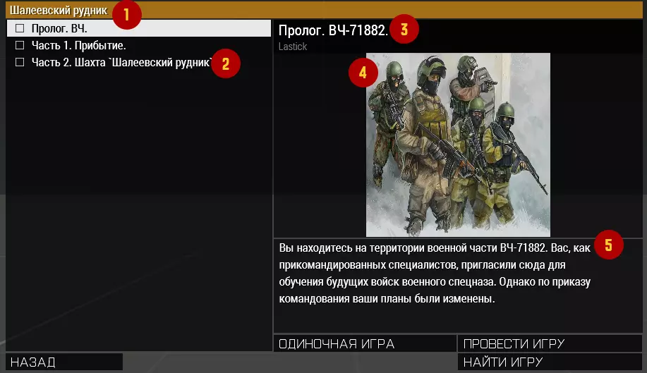 1. 来自config.cpp的战役简称 2. 来自config.cpp的任务简称 3. 来自任务description.ext的名称。特意设置了不同的名称,以便清晰区分各自的来源。示例:briefingName = "序章.VCh-71882."; 4. 来自任务description.ext的图片。overviewPicture。 5. 来自任务description.ext的文本。overviewText。我还会在场景编辑器的【属性】部分添加一些数据。这是为了让其他人能够理解我们在玩什么(真的有人会看这个吗?☺)。你可以按照自己认为合适的方式去做。 接下来是填充.config.cpp文件。严格遵守任务目录。如果任务超过三个,就再添加。当然不要忘记class和directory。 class CfgPatches { class MyCampaign { // 编辑器元信息 name = "矿难事件"; author = "Lastick"; url = ""; requiredVersion = 2.02; requiredAddons[] = { "A3_Functions_F" }; units[] = {}; weapons[] = {}; }; }; class CfgMissions { class Campaigns { class MyCampaign { directory="Coop_bm Coop"; }; }; class MPMissions { class MyCampaign { briefingName="沙列耶夫斯基矿场"; class Paranoia_0 { briefingName="序幕. 内务部队"; directory="Coop_bm Coop Missions Paranoia_0.grassland"; }; class Paranoia_1 { briefingName="第一部分. 抵达"; directory="Coop_bm Coop Missions Paranoia_1.grassland"; }; class Paranoia_2_LLIAXTA { briefingName="第二部分. 沙列耶夫斯基矿场矿井"; directory="Coop_bm Coop Missions Paranoia_2_LLIAXTA.cytech_underground_terrain"; }; }; }; }; }; Description.ext!此文件中出现的任何错误都将导致武器崩溃。