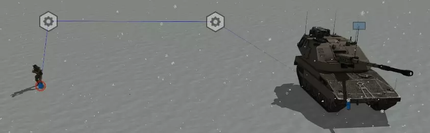添加到制服 addItemToUniform 添加到背心 addItemToVest 添加到背包 addItemToBackpack 若要通过命令删除物品,请使用remove。例如 gg1 removeItemFromUniform "FirstAidKit"; gg1 removeItemFromVest "FirstAidKit"; gg1 removeItemFromBackpack "FirstAidKit"; 若要删除武器配件(弹匣除外),使用以下命令 removeAllPrimaryWeaponItems gg1; 机器人行为 阵营关系此命令用于在场景中更改阵营之间的关系。西方阵营 = 蓝方 东方阵营 = 红方 抵抗势力 = 独立势力 例如,设置独立势力与蓝方之间为友好关系 独立势力 setFriend [西方阵营, 1]; 西方阵营 setFriend [独立势力, 1]; 设置为敌对关系 西方阵营 setFriend [独立势力, 0]; 独立势力 setFriend [西方阵营, 0]; “呼叫敌方支援” 创建此类触发器,例如在500米范围。 类型 - 通过点,激活条件 - 在我的案例中为任意蓝方单位,激活类型 - 被独立势力发现(该单位在此触发器中发现了蓝军士兵。逻辑上,触发器中应该同时存在这两种单位(总需要有单位去发现他们)。