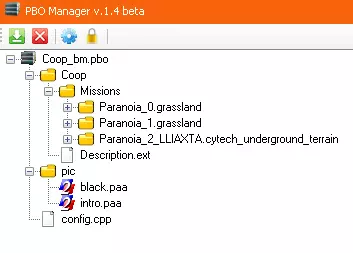 战役 我使用战役这样的工具的经验。 方便整合模组。可以直接将所需内容固定,这样所有人都能下载。 只有主机能看到显示界面。 由于它是作为模组运行的,所以可以整合本地模组。(不建议将盗版内容公开分享,仅限个人或小范围使用。) 所有任务都整合在一个“文件”中,而且界面设计美观。不确定,但似乎在加载场景时不需要下载任务文件(当然前提是战役已下载)。这里我不会介绍所有内容,只说明如何让它正常工作和显示。 首先,我们需要创建自己的任务。 其次,创建5个文件(也可以是4个),不包括.pbo文件: Coop Missions pic(可选,用于开场图片) config描述.ext 顺序如下: