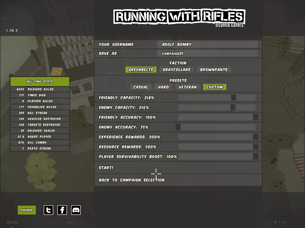 And here, you see the aftermath of the codes i entered... I did not screenshot me typing in the chat... Collection of codes Here's the list I found PS. Everything spawns to the right of your character. The slider when creating a new solo campaign can affect the /promote and /rp... the slider to modify the xp gain and rp gain Codes with " ^1 " at the end of description requires testing to see what the code does /promote [gives you 8000 xp [depending on the xp slider] /rp [gives you 2500 rp [depending on the rp slider] /G36 [spawns a 5 G36 weapon] /tank [spawns a a tank... may work with mods that has remodel the tank] /jeep [spawns a jeep] /humvee [spawns a humvee] /apc [spawns a apc... may work with mods that remodel the apc] /tow [spawns a tow] /c4 [spawns a c4 that been thrown] /m72 [spawns 4 M72 Law] /laptop [spawns a laptop] /briefcase [spawns a briefcase] /teddybear [spawns a teddy bear] /cargo [spawns a cargo truck] /quad [spawns a quad] /javelin [spawns a javelin] /mortar [spawns a mortar deploy] /restart [restart the map you are in] /0_win [win the map you are on] /DC [spawn cover deploy] /create_vehicle [spawns a secret cargo vehicle] /dgl [spawns a grenade launcher deploy] /dmg [spawns a machine gun deploy] /dminig [spawns a minigun deploy] /friend [spawns a friendly unit] /foe [spawns a enemy unit] /lw [spawns a lone wolf unit] /gb1 [spawns a blue box] /gb2 [spawns a purple box] /gb3 [spawns a titan box] /sniper [spawns a friendly sniper] /cb1 [spawns community box 1] /cb2 [spawns community box 2] /cb3 [spawns a community box 3] /lottery [spawns a lottery ticket] /M29 [spawns in 44 Magnum] /mg [spawns in a deployed mg] /kill_rt [destroy all enemy radar towers] /kill_own_rt [destroys all of radar jammers] /kill_rh [destroys radio jammers] /mustela [spawns a mustela which is a tank] /mortar [spawns a mortar deploy] /complete_campaign [complete the campaign] /whereami [tell where u are on the map] /1_win [win the area you on] /1_lose [Lose the area you on] /0_attack [makes the ai defend only...] /test [Test yourself] /defend [makes the ai defend only] /kill_aa [destroy all of AA] /modtest [ima not gonna bother this] /sidinfo [im also not gonna bother this] /kick_id [kick someone] /kick /wound [does something] /enable_gps [does something] /icecream [spawns a ice cream van] /grenadier [spawns an grenadier] /god [spawns a vest that is indestructible] /cb4 [spawns a community box 4] /cb5 [ spawns a community box 5] /177 [no clue] /guntruck [a gun truck] /noxe [spawns a vehicle]^1 /legion [spawns a vehicle]^1 /m528 [spawns a vehicle]^1 /croc [spawns a flame thrower vehicle] /sev90 [spawns a vehicle]^1 /repair_crane [spawns a repair vehicle]^1 /repair_tank [spawns a repair vehicle flare]^1And thats all i could find on RWR... Updates update 0.0.0.0.0.0.0.1: Fix one grammar ---- update 0.0.0.0.0.0.1.1: add some information for RP and XP ---- update 0.0.0.0.0.1.1.1: The Community boxes and gb1-3 gives you 2 random things that you can get... Like a laptop or a AA-12... ---- update 0.0.0.0.1.1.1.1: Added screenshots for people who are having trouble with the codes ---- update 0.0.0.1.1.1.1.1: move the updates to a brand new section