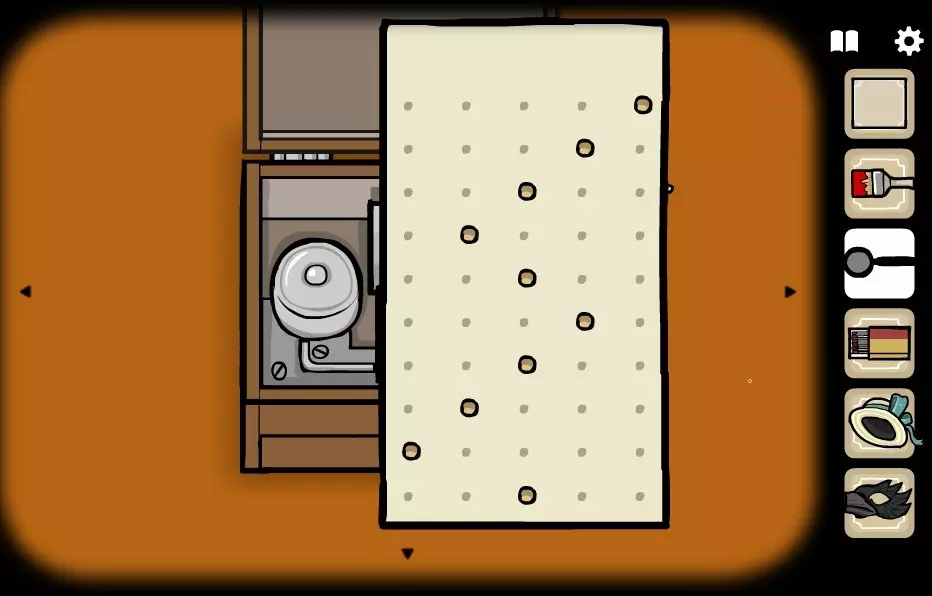 番茄先生 - 3 记住柜子上方画作上圆圈的顺序。 前往出口(向右转1次),在右侧柜子上按所需顺序摆放圆圈。获取鸦片烟斗。 点击左侧的猴子。 点击第一个猴子。敲击次数为猴子的编号。 顺序:1-2-3-2-1-3-3-1-2-3 三只猴子同步敲击后,点击第三个猴子。获取金钥匙。前往有窗户的房间(向右转1次),点击有花的花瓶,摘下所有花瓣,获取【鸦片】。 在墙上贴着的纸条上找到【深灰色印章】。 点击右侧的柜子,用找到的钥匙打开。拿起灯笼照亮柜子,记住顺序后前往有厕所的房间(向左转1次)。 输入顺序,获取【锤子】。 同时拿走【卫生纸】。前往卡班先生处(左转两次)。把鸦片烟管给他,在烟管里放入鸦片,然后用火柴点燃。在房间里走动,直到进入森林。 在森林中移动并点击乌鸦。 然后点击乌鸦的影子,再点击乌鸦本身,获得匕首和成就。