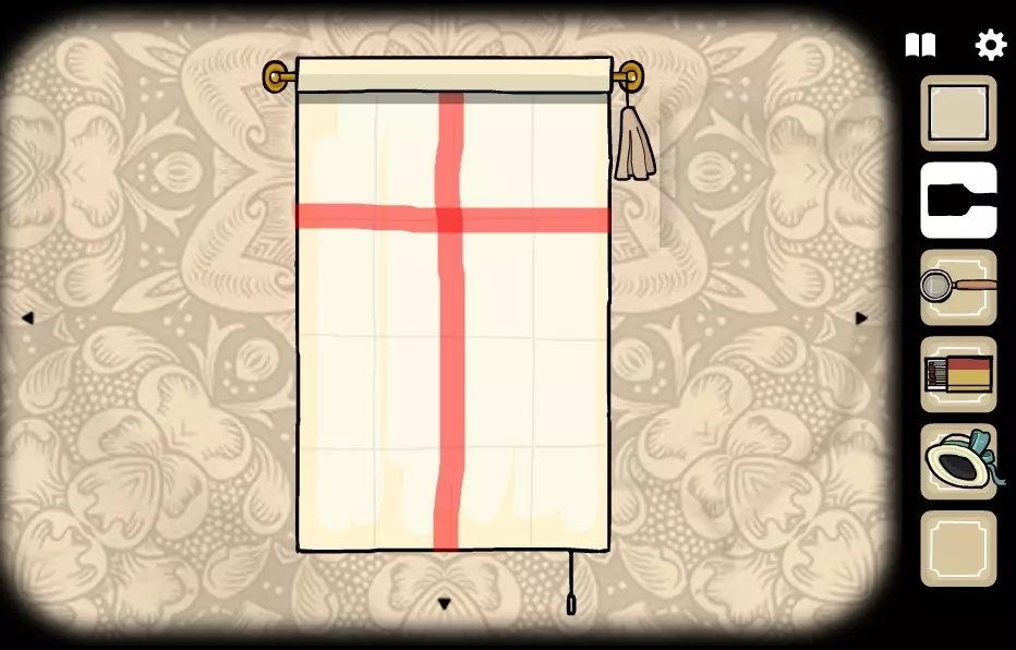 我们去找法赞女士。把帽子交给她。 点击法赞女士身后的画布两次,然后用沾血的画笔绘制第一幅画中的符号。 前往有相机的房间(向左走2次)。 点击相机,拿起湿玻璃并将其放入相机中。 拉动红色杠杆。获取照片底片1号。如果点击杠杆后显示法赞女士尚未准备好拍照的提示文字,请返回法赞女士的房间,点击画布,再点击画布右侧的小猫,然后重新绘制符号。