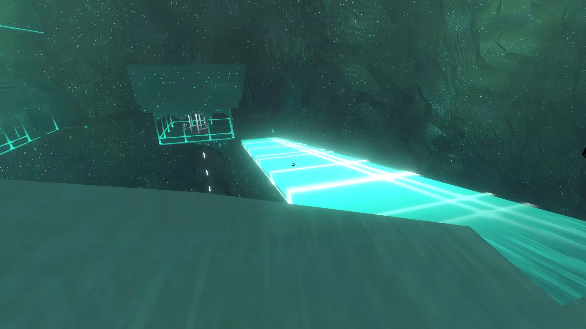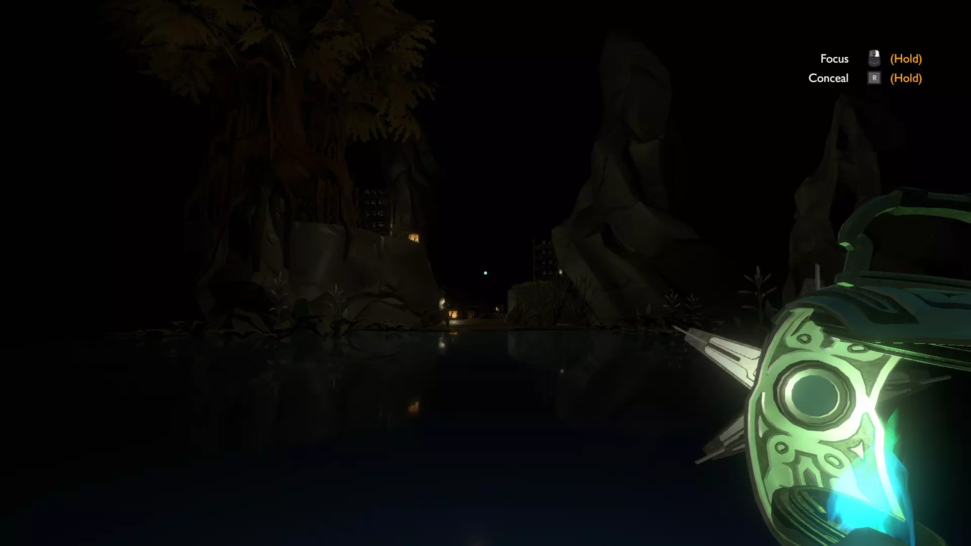 不要乘电梯下到码头——而是走进那栋大楼,走楼梯下去。这是我知道的进入无尽峡谷档案馆最简单、最轻松的方法。记住要快跑,并且把你的【神器】藏好,因为一旦到达底层,就会有一只猫头鹰外形的外星人追着你。 前往档案馆,把你的【神器】放在容器里。然后跳进水里,重新进入模拟世界。走我们已经走过的那条路,但这次要下到码头。 乘船进入区域之间的地带(黑色虚空),然后跳下去。你会来到地下湖区域,从这里走过去就能进入迷雾林地档案馆。