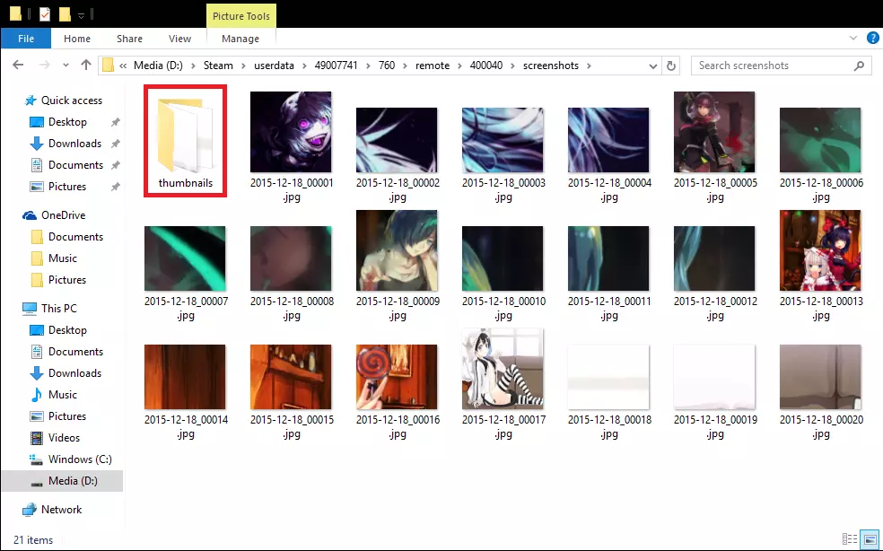 在截图文件夹内,创建另一个名为【thumbnails】的文件夹。