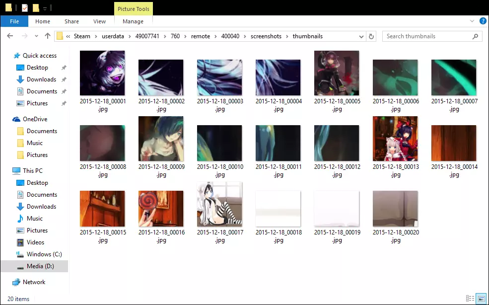 第四步 现在你的截图文件夹中已有想要分享的jpg格式截图,请将它们全部复制,并将副本粘贴到缩略图文件夹中。 确保这些副本与截图文件夹中的文件名称完全一致!