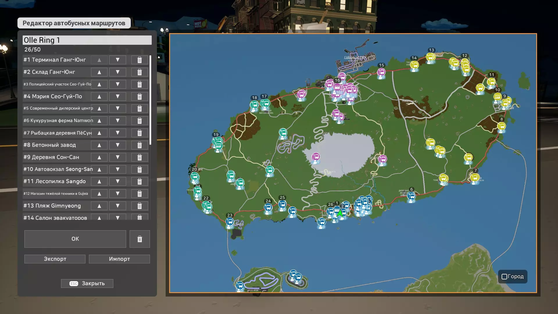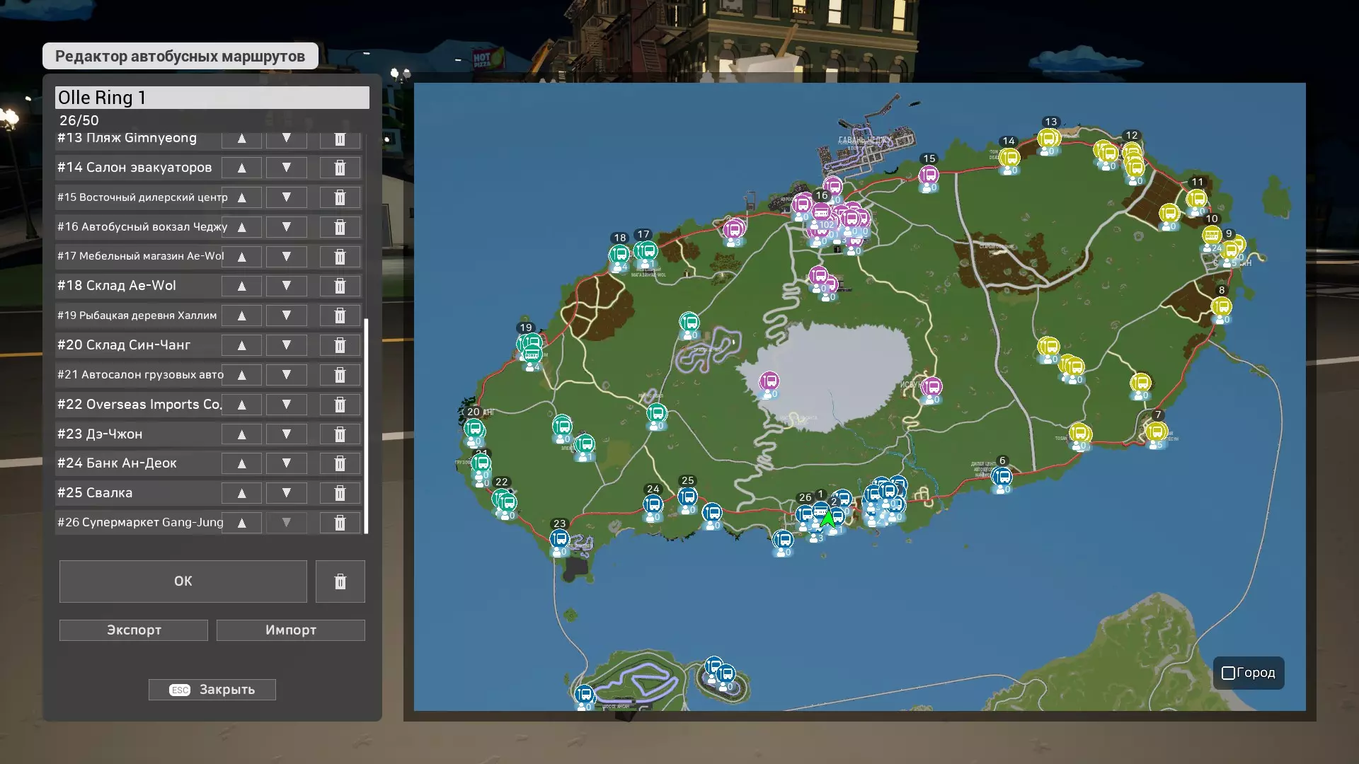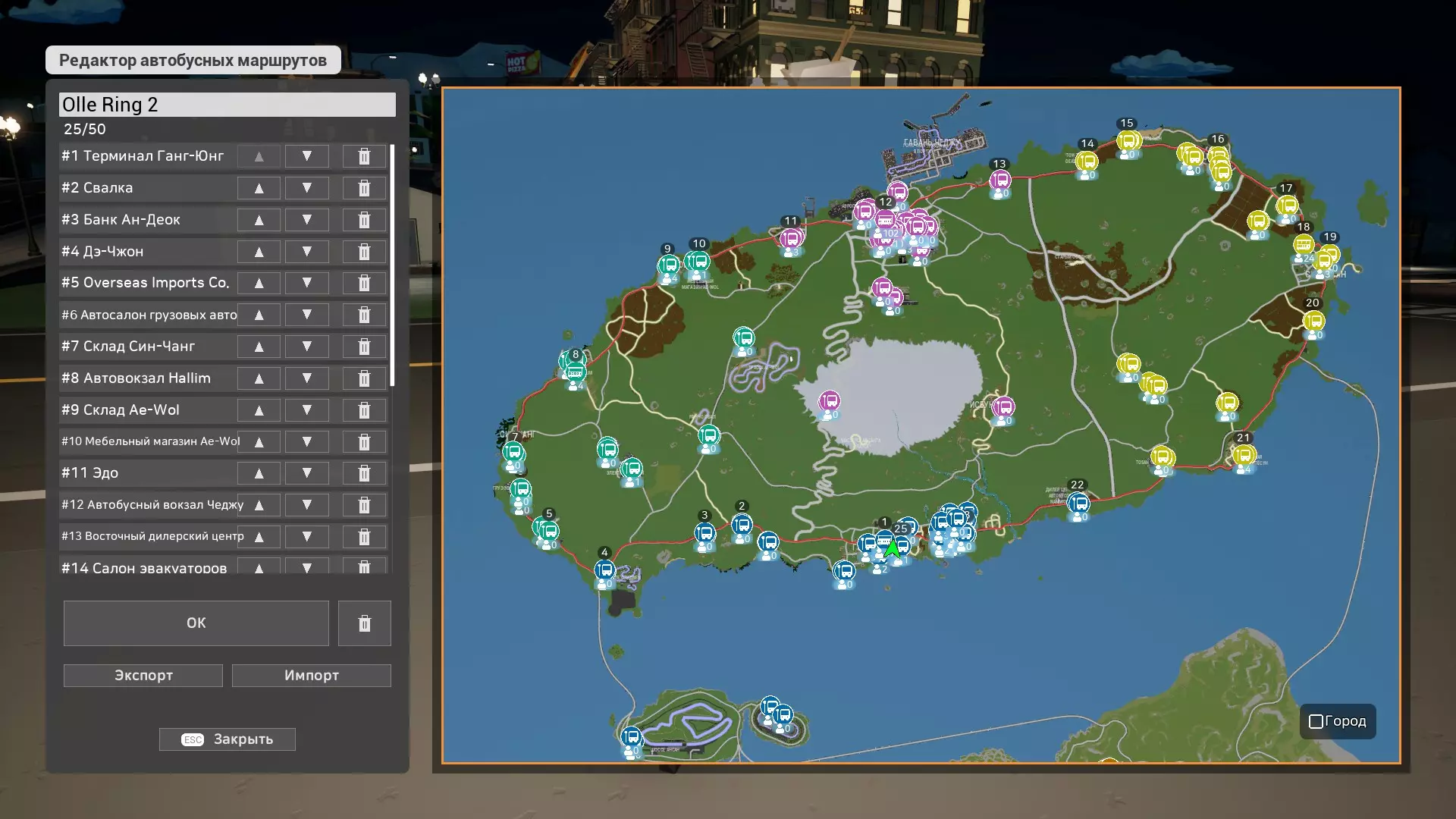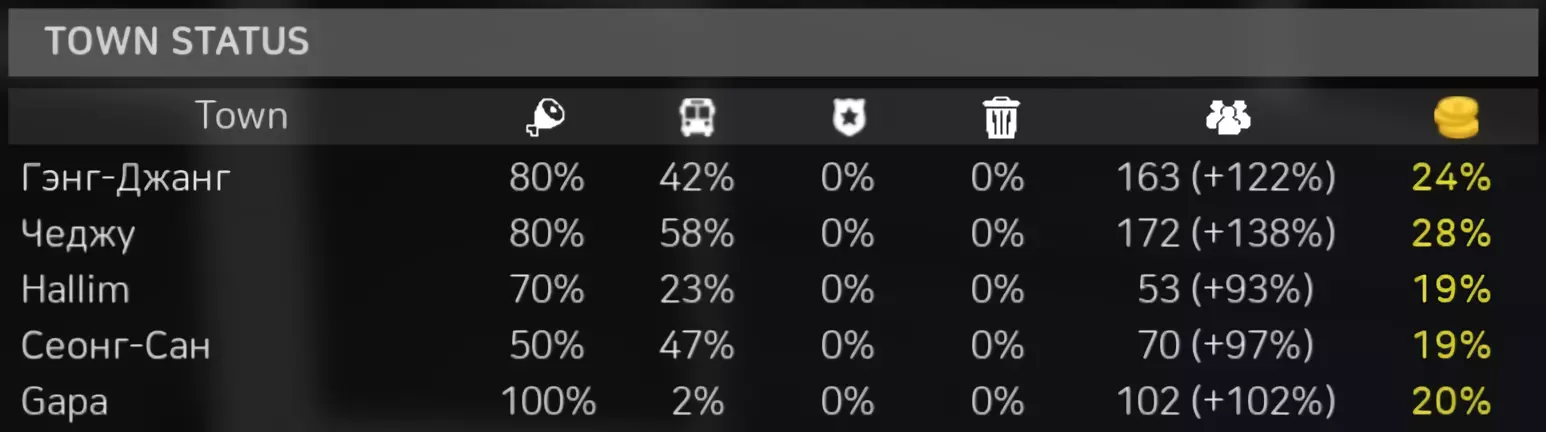 城市状态中有4种可执行的工作,完成后可获得城市 bonus。分别是:向超市配送食物、巴士班次、警察工作和垃圾清运。 人口 bonus 会提升城市 bonus 并加快生产速度。食物/巴士提供100%人口 bonus,警察和垃圾提供20%。人口 bonus 最高为240%。 50%人口 bonus = 10%城市 bonus(最高30%)。因此,要获得最高城市加成,需要达到超过150%的人口加成。 人口百分比计算公式: (n-食物百分比)+(n-公交车百分比)+(n-警察百分比×0.2)+(n-垃圾百分比×0.2)=人口加成百分比。 示例: 食物-20%;公交车-40%;警察-80%;垃圾-100%(随机数值)。 20+40+(80×0.2)+(100×0.2)=96%人口加成。 由于警察工作和垃圾清理提供的加成较低。如果人口(20%)且这些工作无法自动化,那么为了获得城市奖励,最好不要从事这些工作。 以下是我用于自动化此流程的路线。每个城市大约会有20%或更高的奖励,但路线并非完美,其中可能存在无法获得更多奖励的错误。
