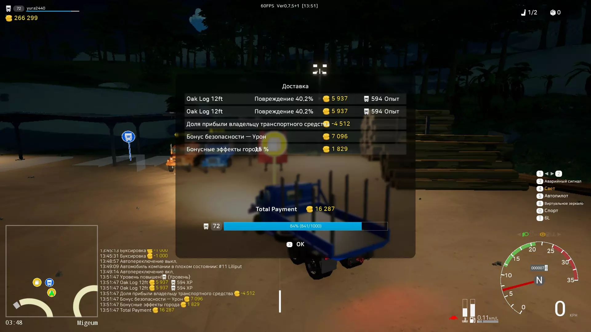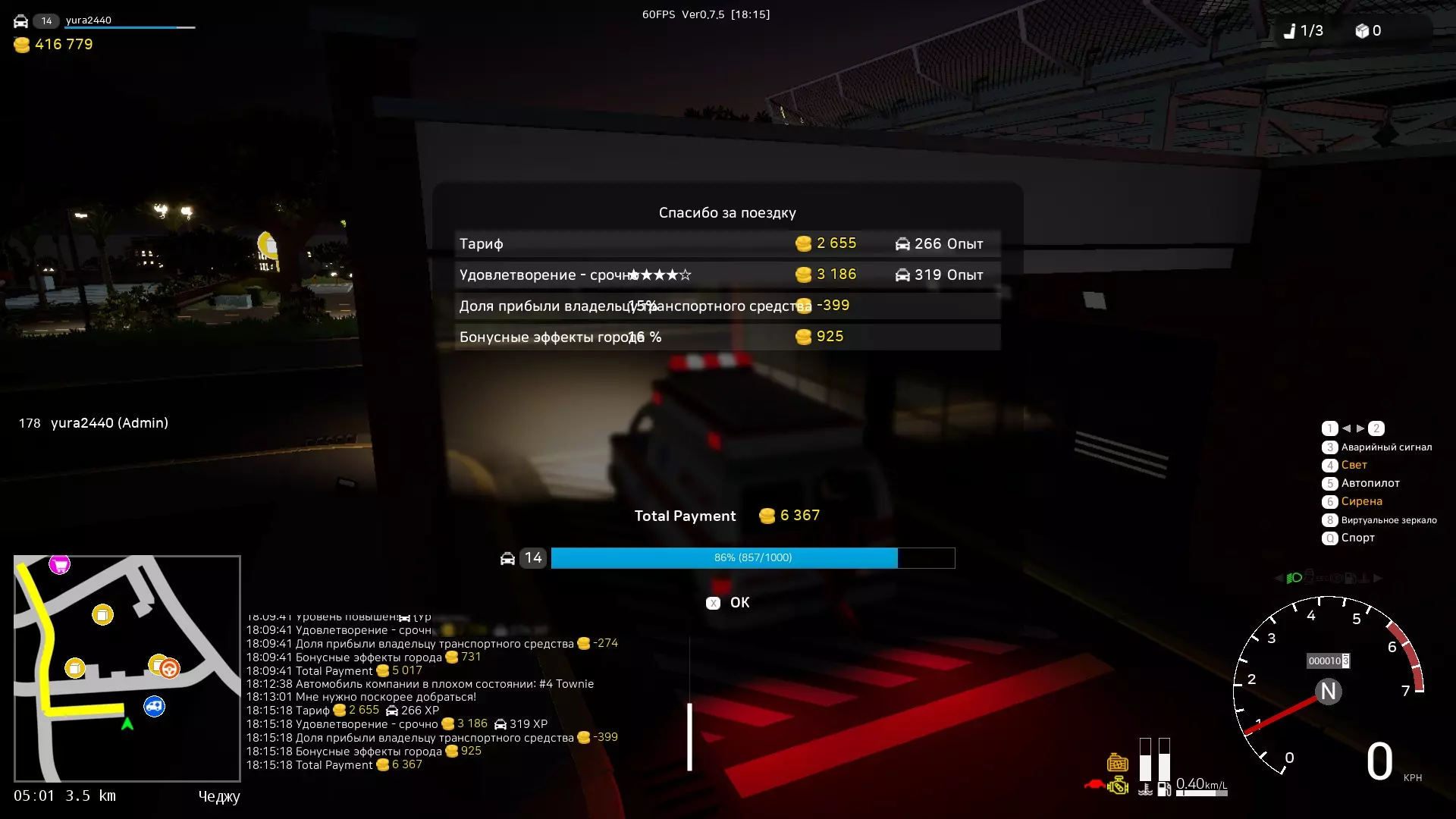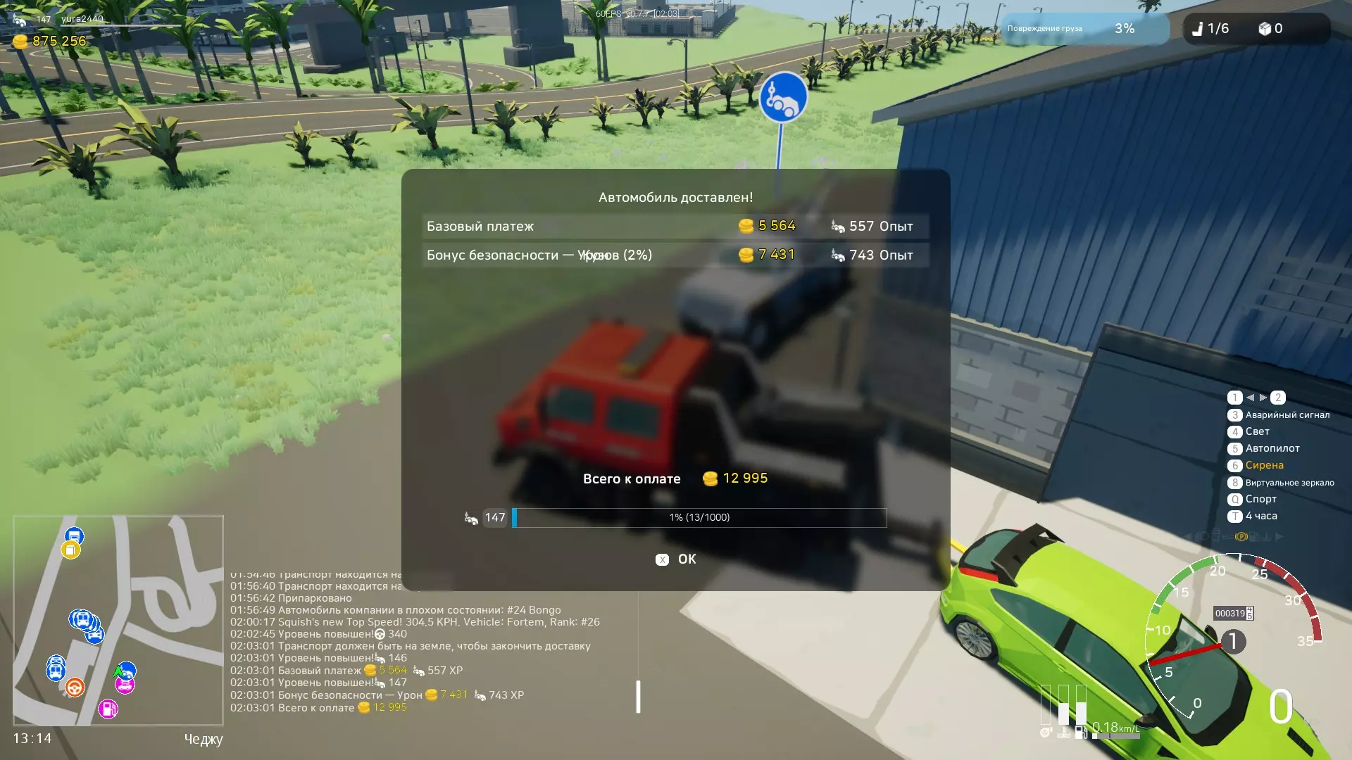 这种类型的车辆通常停在港口,并且有多种类型:从轿车到大型卡车。 轿车需要行驶约6公里,费用为10000。对于这样的距离来说有点少,但你可以选择卡车,挂上拖车并装载2-3辆车,这样利润就能达到约20000-30000(如果不是你的车,行驶费用会扣除约50%的利润)。 还有大型运输工具,同样可以用卡车运输。普通的救援车可能不行,就算能行,运输起来也会非常困难。 3. 呼叫救援服务(车辆翻转)