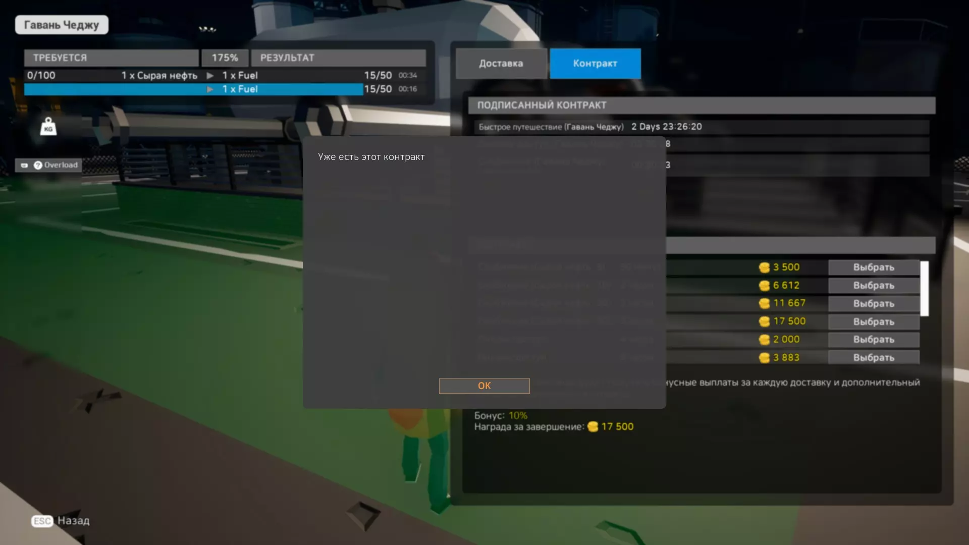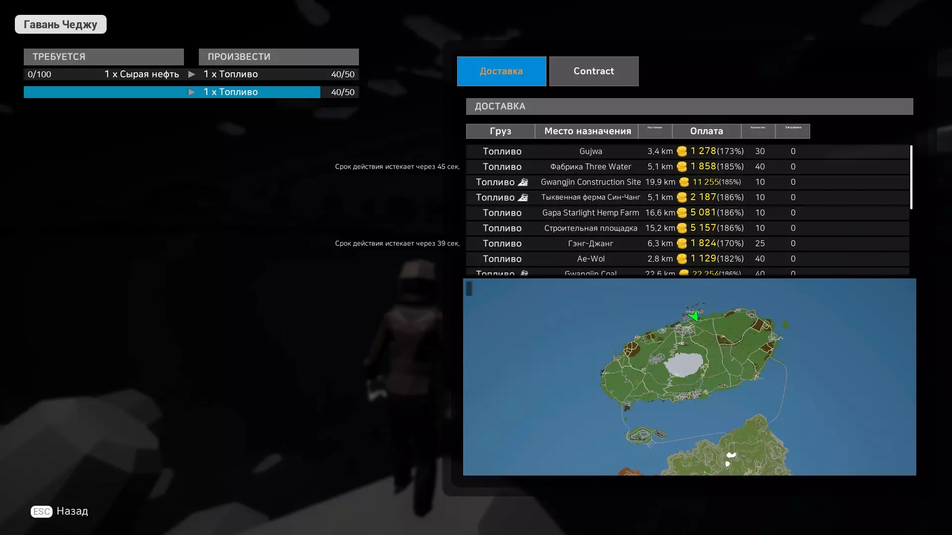 你可以在货物交付点签订合同,并能轻松快速地前往那里。请注意,每次移动还需支付100枚硬币。在合同有效期内,整个公司都可以使用该功能。如果你需要经常待在某个地方,这是一个非常实用的合同。 同一种类的合同只能领取1份。