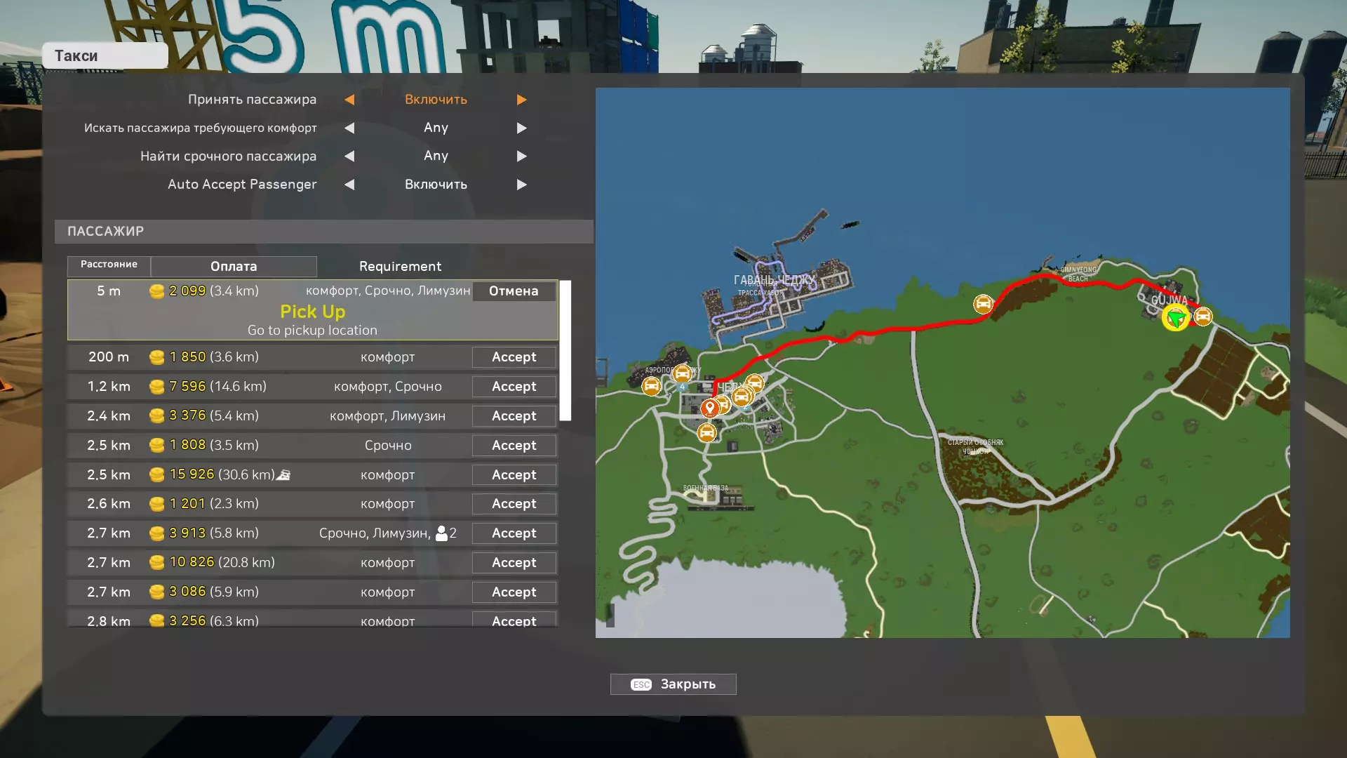 通过此菜单可以轻松查看每位乘客的信息,包括:从哪里接乘客、送往哪里、行程距离以及支付金额。该面板极大地简化了乘客选择流程,无需再亲自前往现场了解所有详情。您还可以根据自己的需求自定义此面板,例如在搜索中排除需要快速行驶或舒适体验的乘客。 普通乘客和精英乘客: