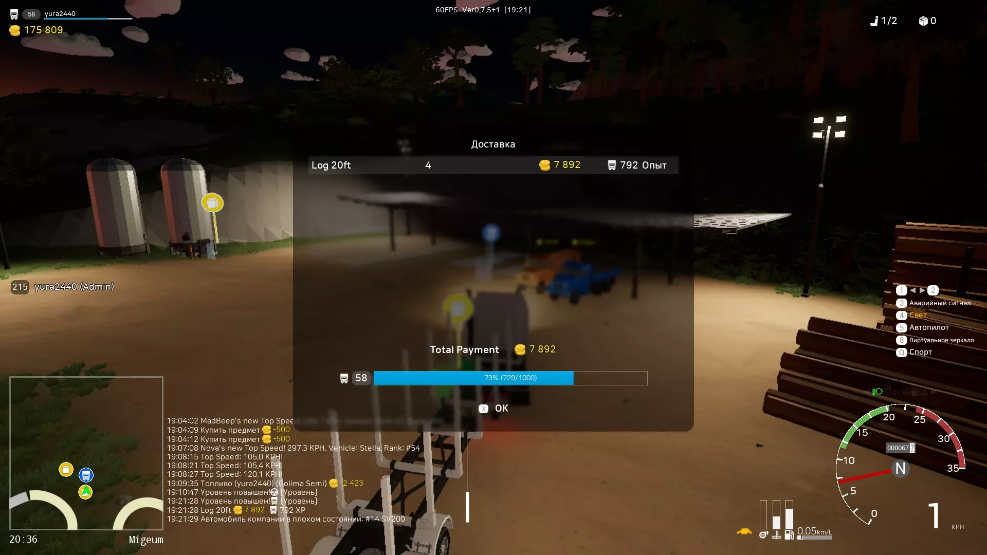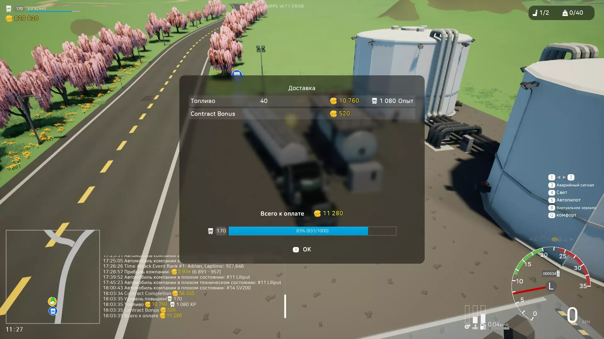 等级 - 50级长途司机 价格 - 160000 租金 - 480/10分钟 所有者利润份额 - 46% 发动机 - 350马力 座位数 - 3 这是最好的油罐车之一。容量为20吨液体。 【合同/业务】 要接取合同,需先开设公司或集团。合同需用金币购买,会提供各种奖励。 合同类型: 1. 补给/货物运输: