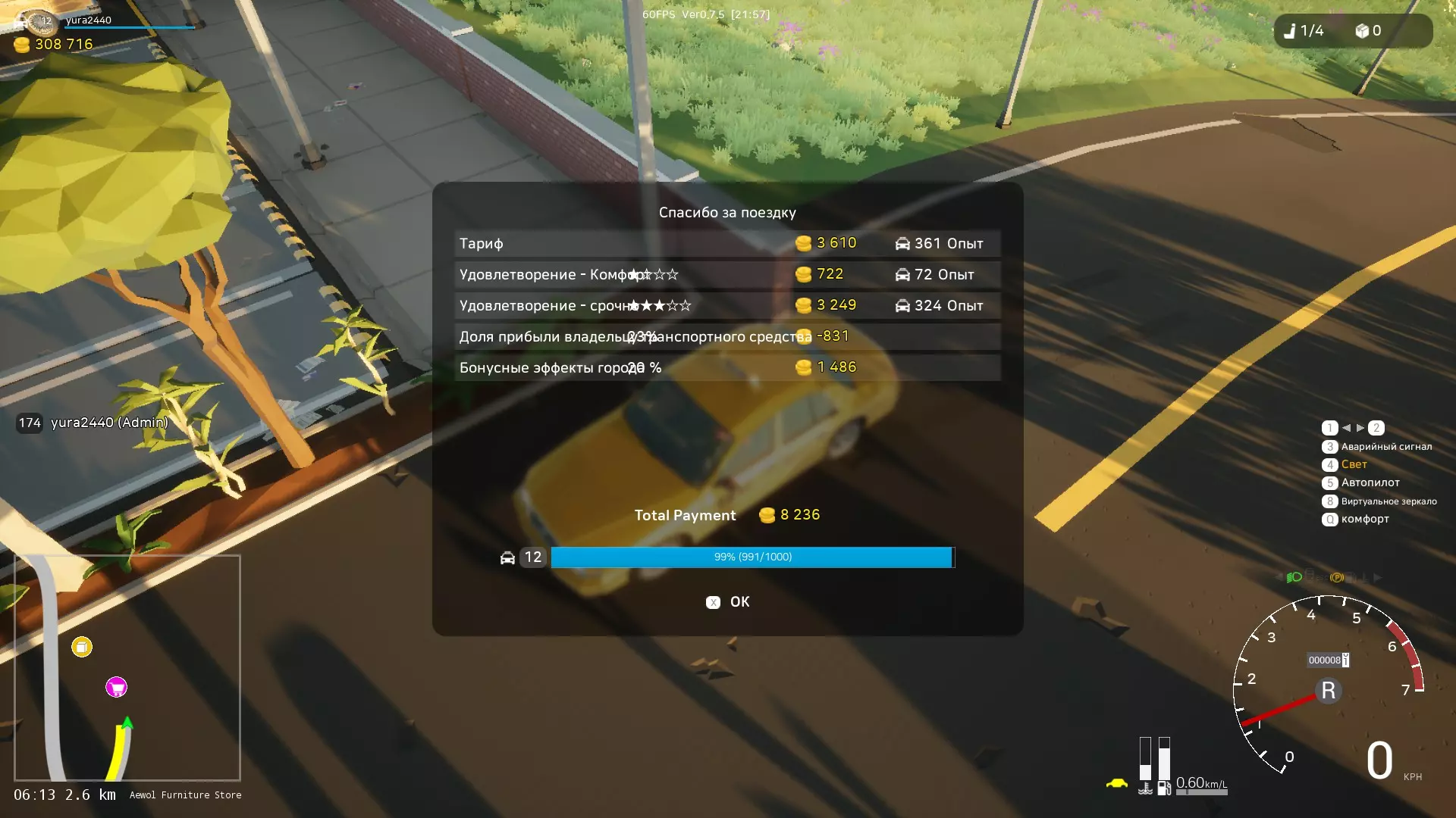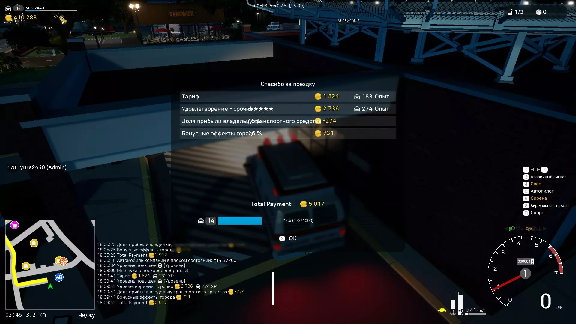 等级 - 5级车手和50级驾驶 价格 - 100000 租金 - 100/10分钟 车主利润分成 - 10% 发动机 - 150马力 座位数 - 1 【变更与更新】 在本部分中,您可以查看本指南的各种变更,从游戏0.7.10版本更新开始。 此举是为了让您更容易了解已进行的变更并查看它们。 2024年12月5日:指南已更新至0.7版本。更新内容: 1. 已更新“引言”部分的表格,并新增了公司和合同的描述。 2. 新增了本部分内容。 3. 15.12.2024:对出租车和警察部分进行了微调。 4. 26.12.2024:指南已更新至游戏0.7.11版本。 5. 18.03.2025 - 24.03.2025:指南已更新至游戏0.7.12版本。 6. 卡车司机:货物数量从7减少到5。 7. 更新了最佳车辆排行榜:修改了车辆描述,替换了4辆运输工具。更新了所有分类下的交通工具截图以及其他部分截图。 略微更新了多个分类的描述内容。 新增了赛车手的交通工具以及公司收入相关内容。 更新了表格数据。 新增【城市状态】分类。 修复了部分错误。