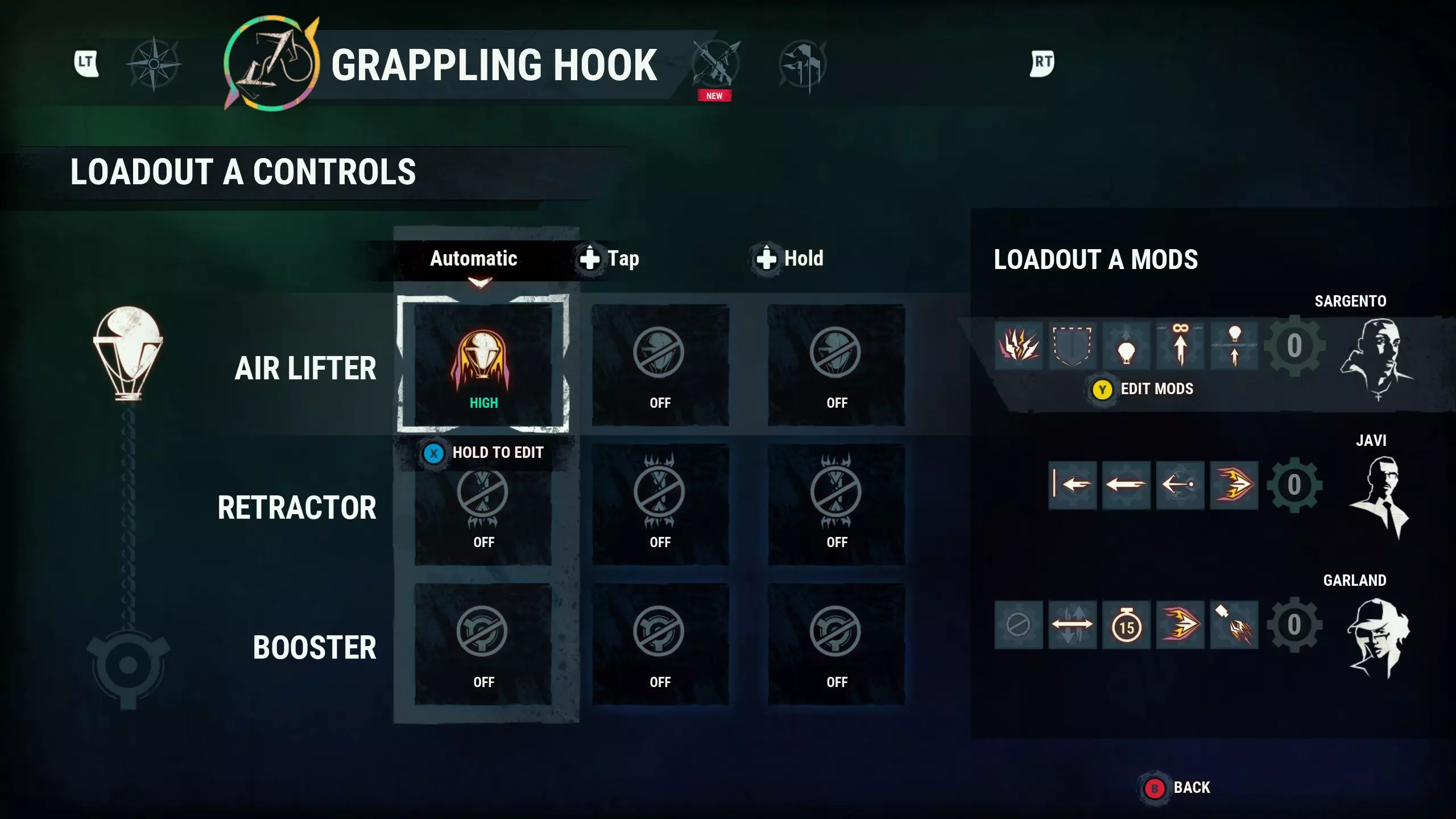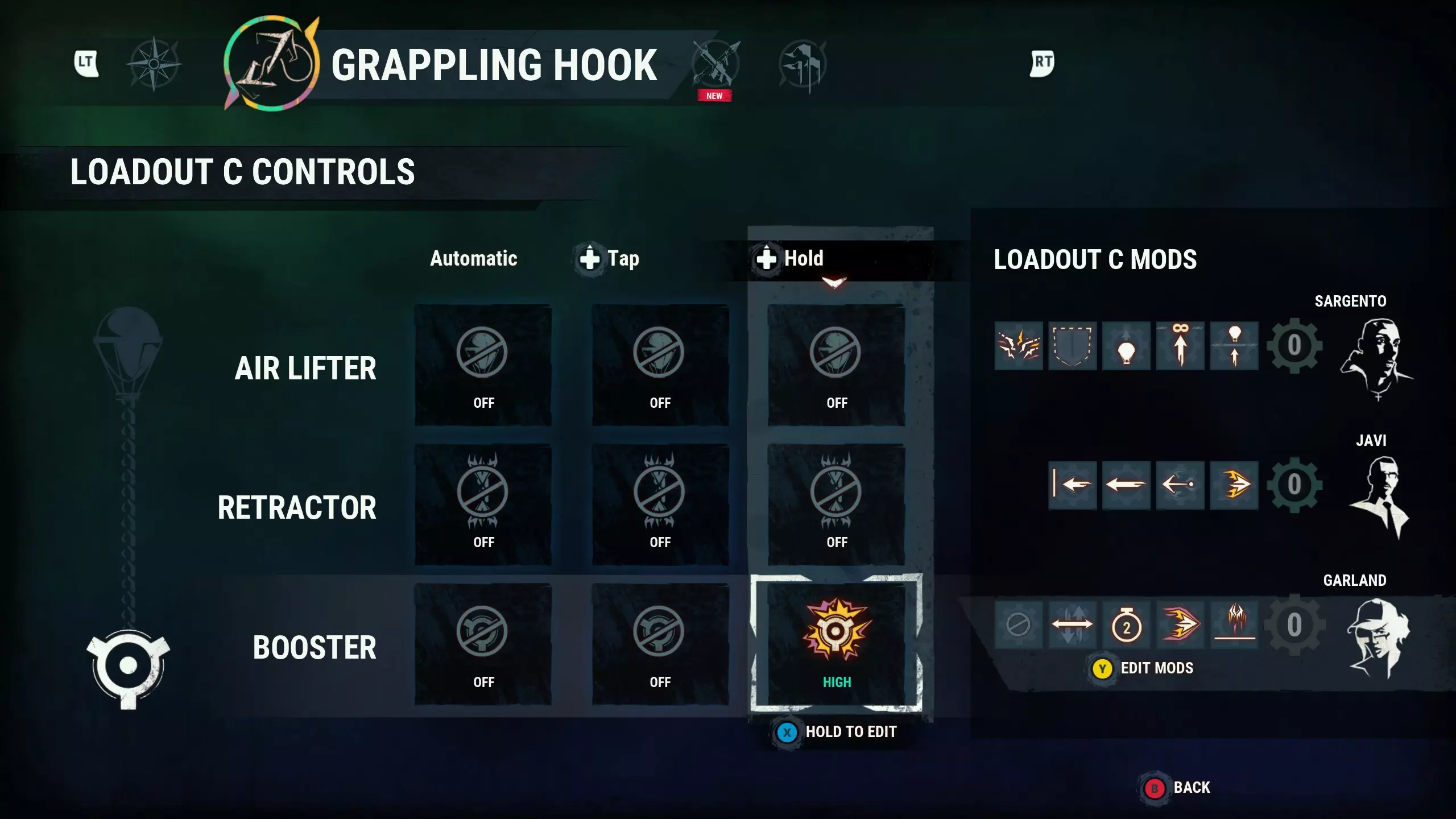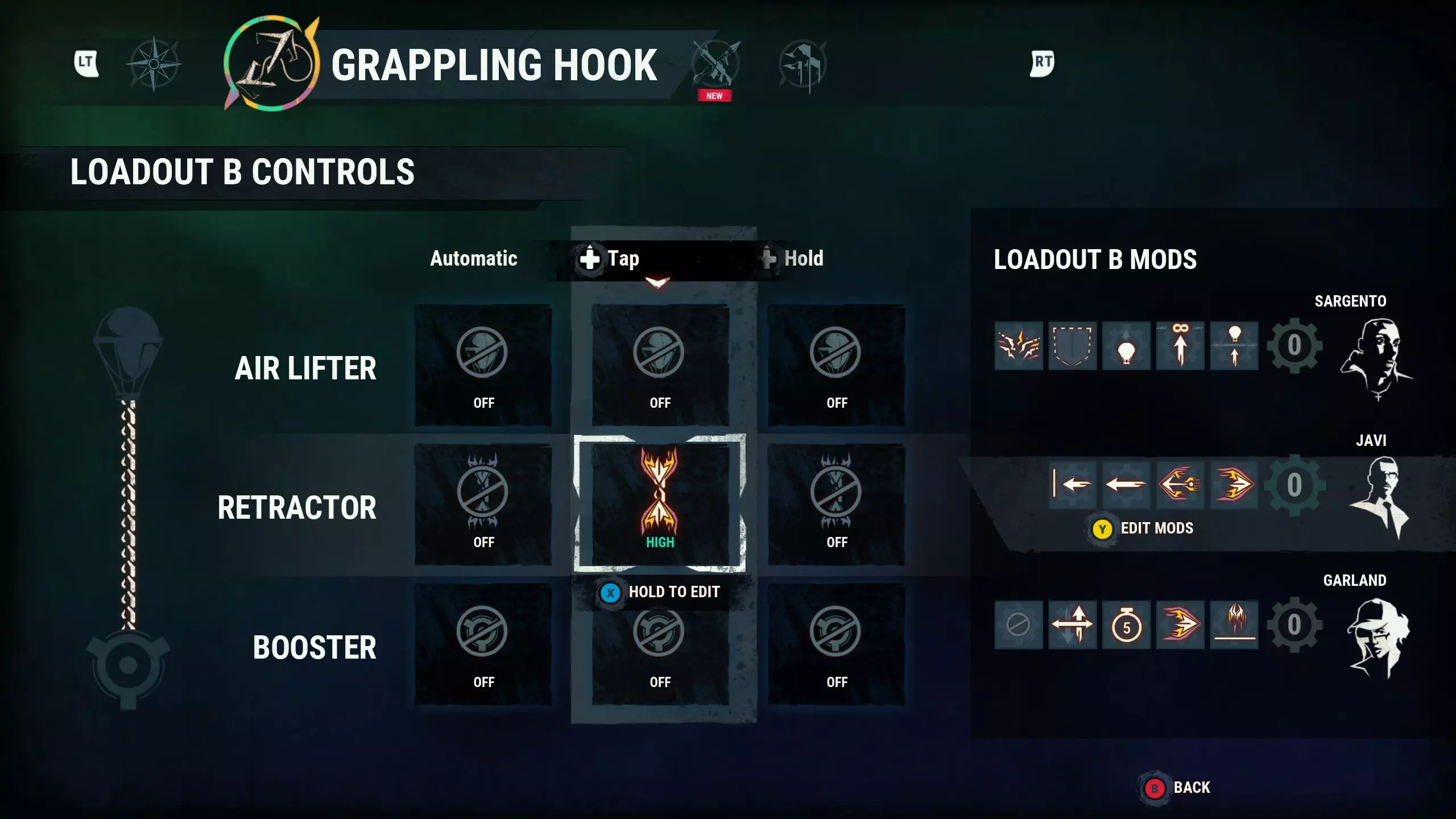 此处用作示例的装备配置详情如下,抓钩模组信息将在后续指南章节中说明(部分配置可能需要根据您的需求调整“低-中-高”设置)