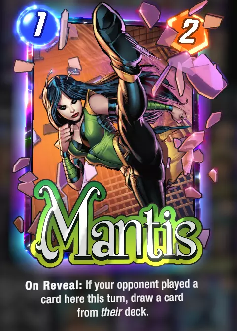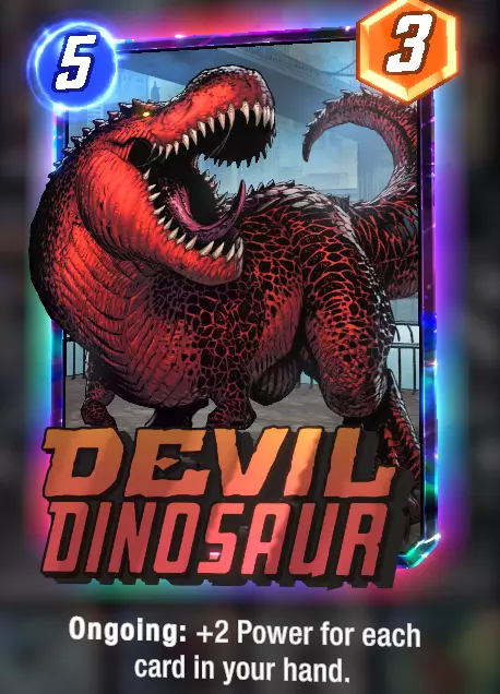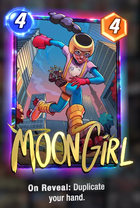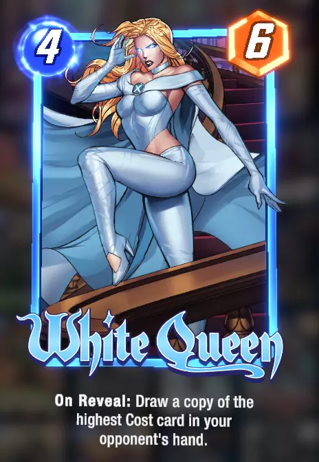 美国查韦斯:由于她总是在第6回合被抽到,这会增加早期抽到其他更需要的卡牌的几率。如果你不需要抽到6费卡牌,她就很有用,因为她会占用第6回合的抽卡机会。 卡组使用方法: 理想情况下,一抽到安吉拉就把她放在空的 lane 中,这样她就能成长。尽快打出主教,让他有时间成长,但如果你在游戏后期才抽到他,他就没时间变得强大,所以作用不会那么大。一般经验法则是,除非你有很多1费卡牌,否则不要在第5或第6回合打出他。但如果你一开始就抽到了恐龙和月光女孩,你可能不会打出那么多卡牌。另一个需要早期打出的重要卡牌是收藏家。最佳打法是用月光女孩复制恐龙,然后在第5和第6回合打出恐龙。你的手牌上限为7张,所以当你使用月女时,你可以复制的卡牌数量取决于当前手牌比7张少多少。复制的卡牌顺序是从左到右,从最左边的卡牌开始,直到复制完所有可复制的卡牌或手牌达到7张为止。因此,通过她最多可以复制3张卡牌。 最佳轮换: 回合1: 冰人 回合2: 安吉拉 回合3: 收藏家放在安吉拉所在位置 另一张1费卡牌放在安吉拉所在位置 回合4: 月女放在安吉拉所在位置,复制恐龙 -> 最多可达到6张手牌 回合5: 恐龙 回合6: 恐龙 胜利 如果你有两张恐龙,那么在回合6最好不要打出1费卡牌,因为它们会提供2点力量,而每张恐龙会因此失去2点力量,净损失为2点。特工13可以解决这个问题,或者如果你知道对手会在哪里出牌,你可以使用螳螂。 如果你没有抽到恐龙: 专注提升安吉拉、收藏家以及主教的能力。你可以复制一些低费卡牌来提供帮助。例如:如果你同时使用了收藏家与主教,那么月女可以为收藏家增加3点能量,为主教增加1点能量,这样原本4费4能量的卡牌就变成了4费8能量,同时你还能获得其他卡牌。这也意味着哨兵可以成为一张2费5能量的卡牌。