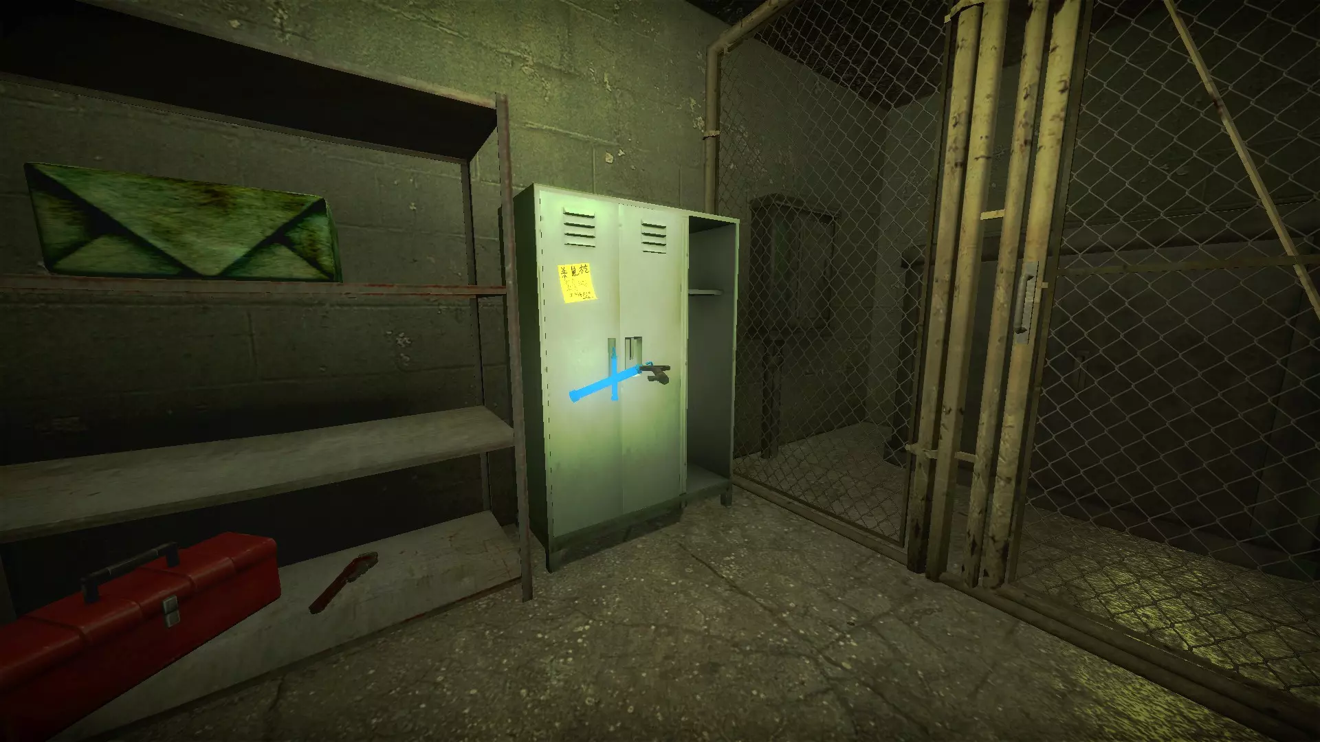 按住E键打开储物柜并获取蓝色钥匙