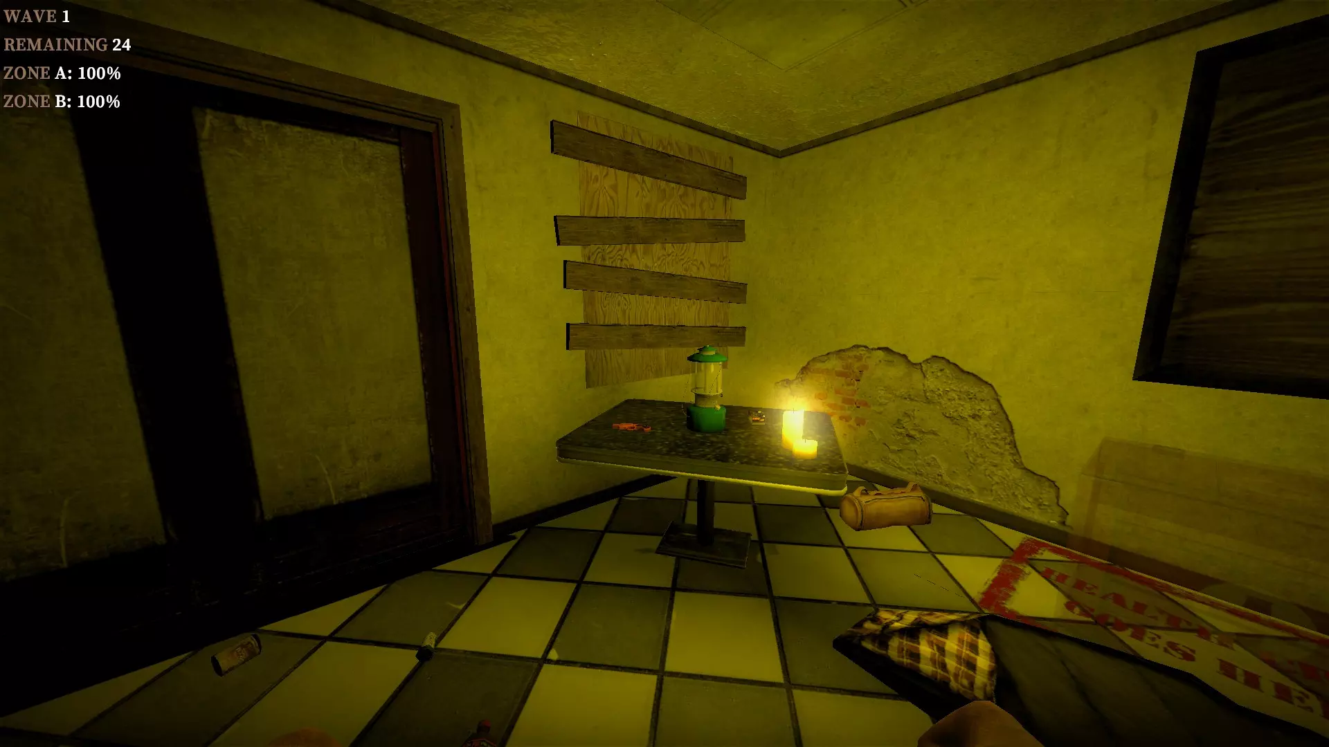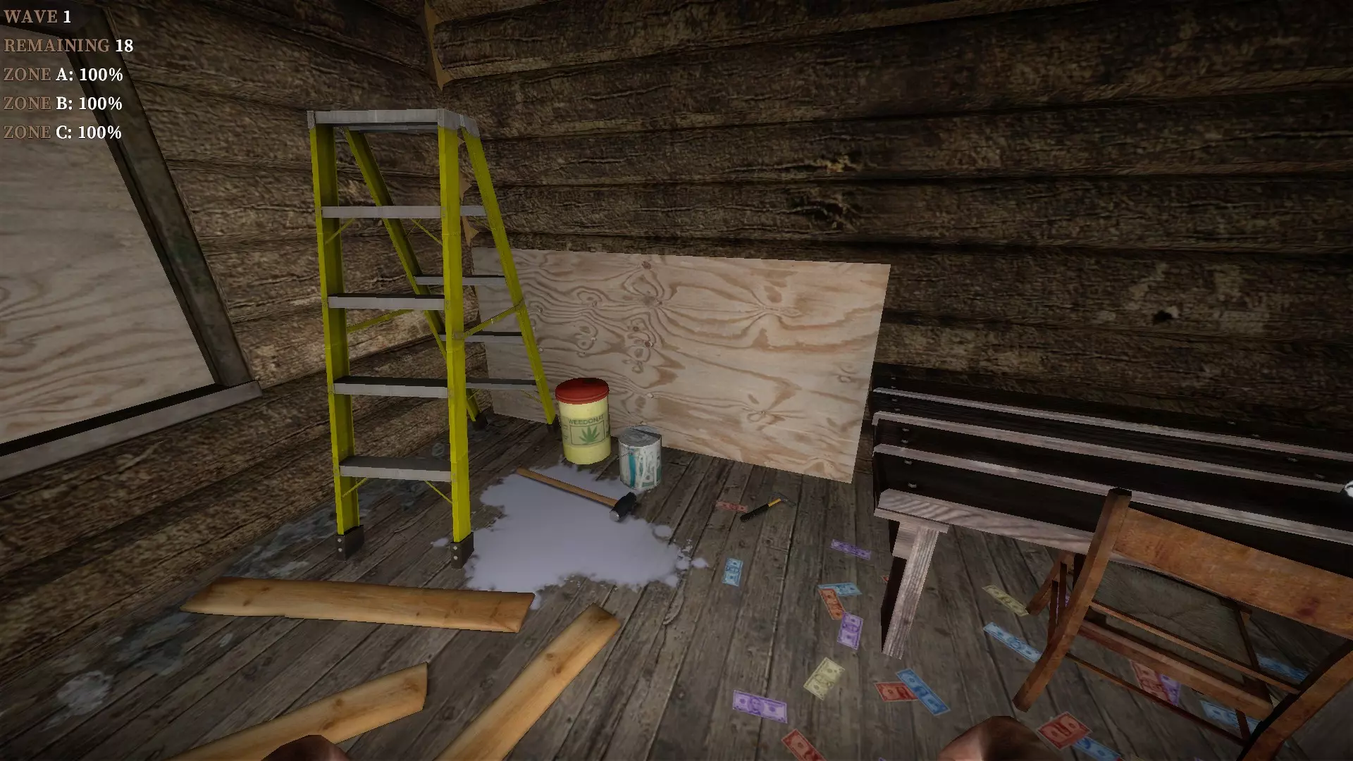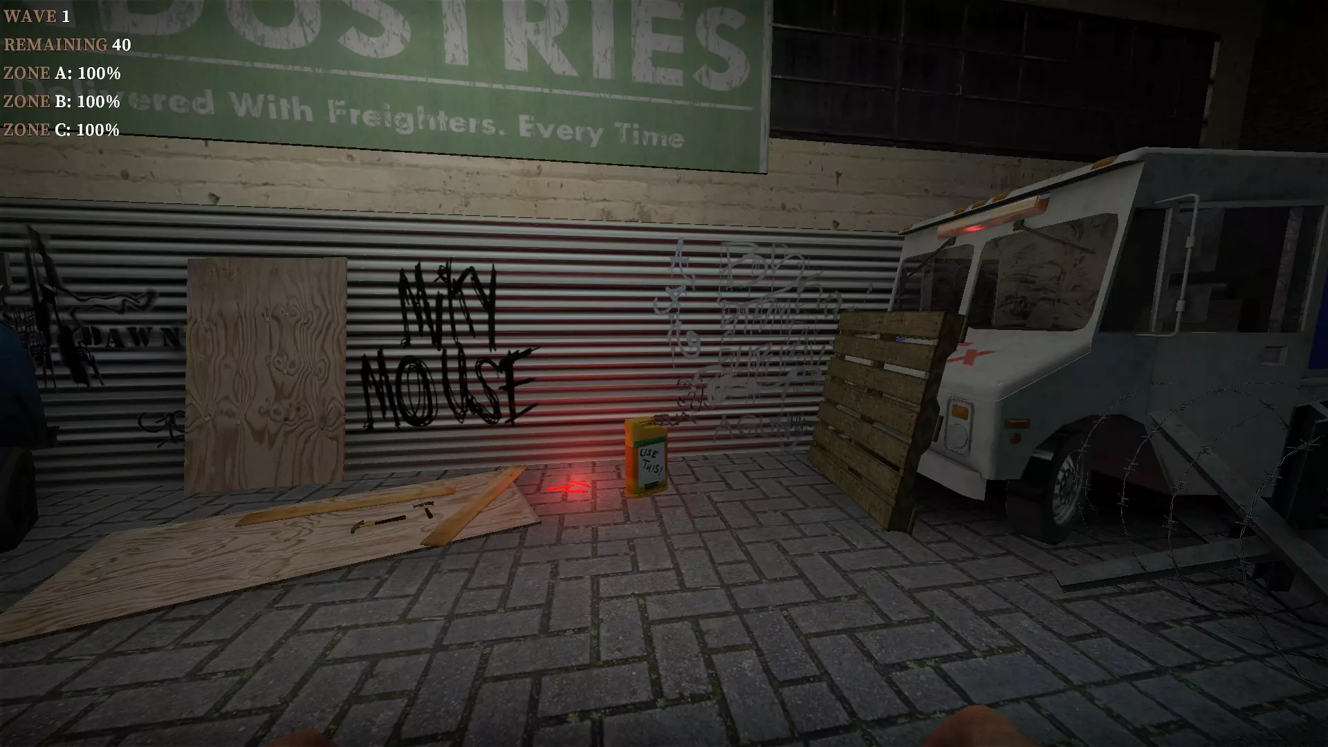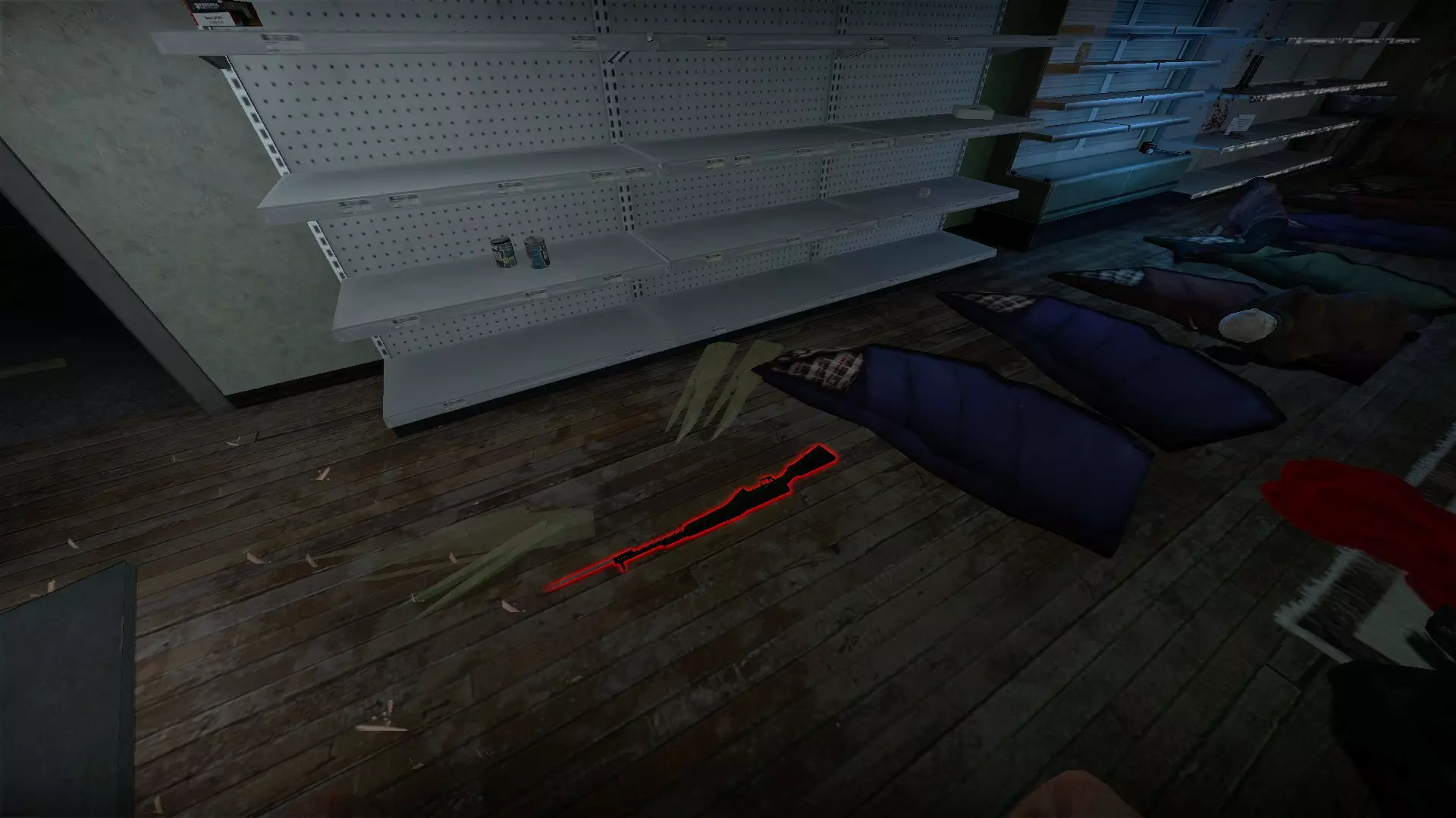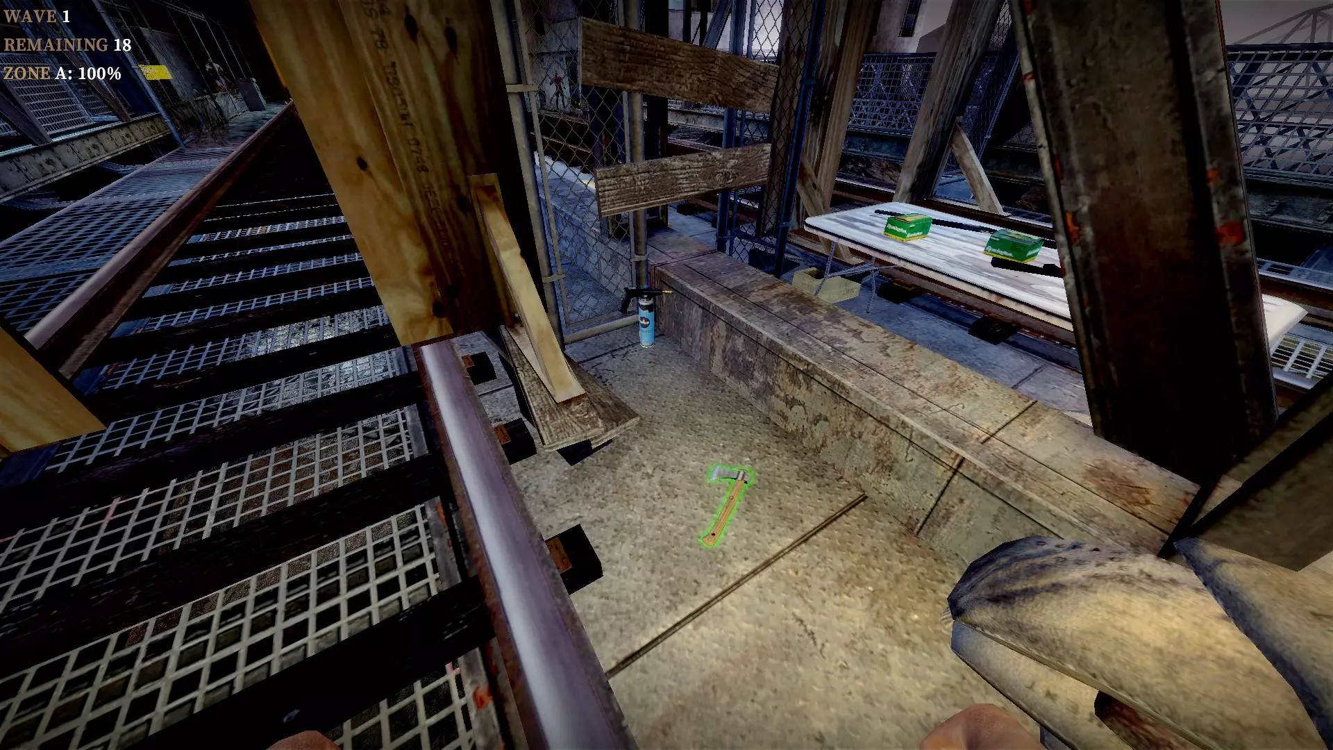 如果你找到穿过商店的路,可以用我的进阶技巧来取下五金店锤子上的木板。装备 barricade hammer( barricade hammer),按住1打开物品栏,按E卸下木板,然后右键点击物品栏中的锤子将其丢弃。这样你就能保留木板并扔掉锤子。如果你尝试按U再按G,这个方法是无效的。