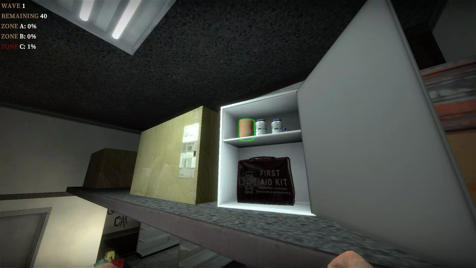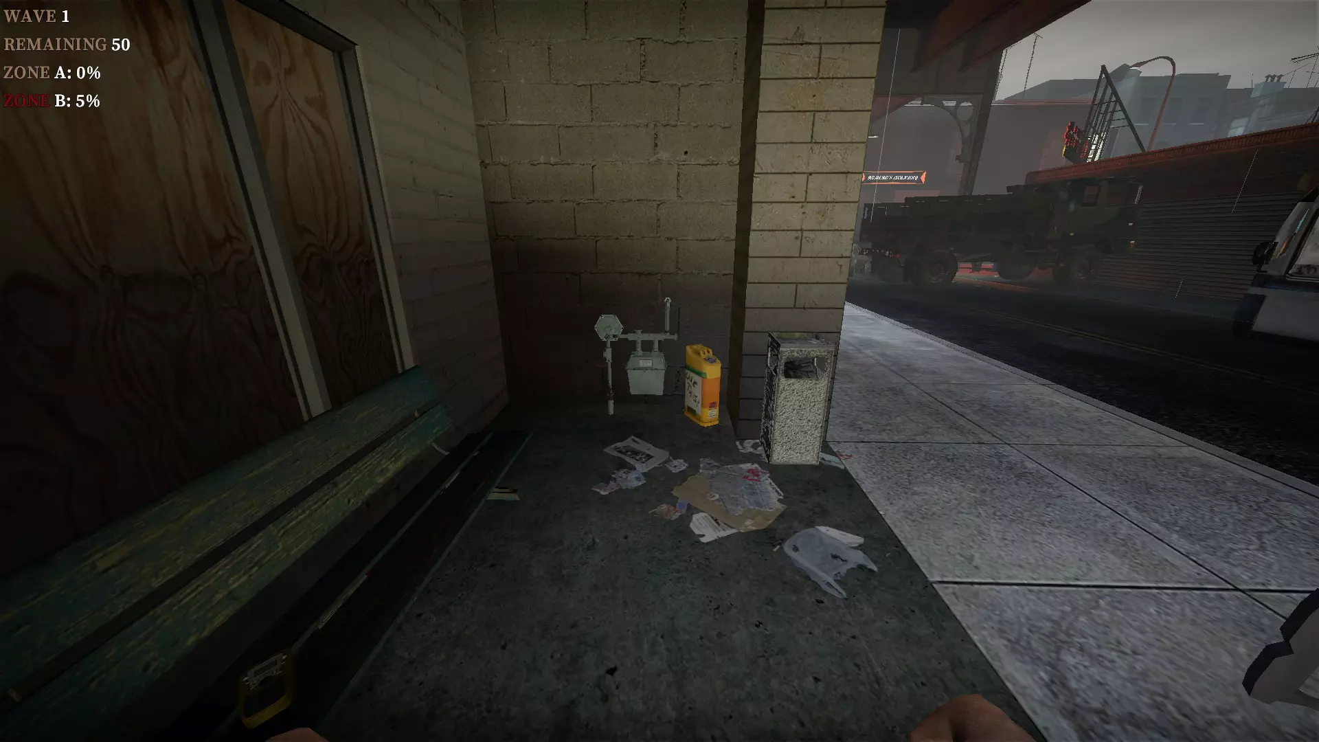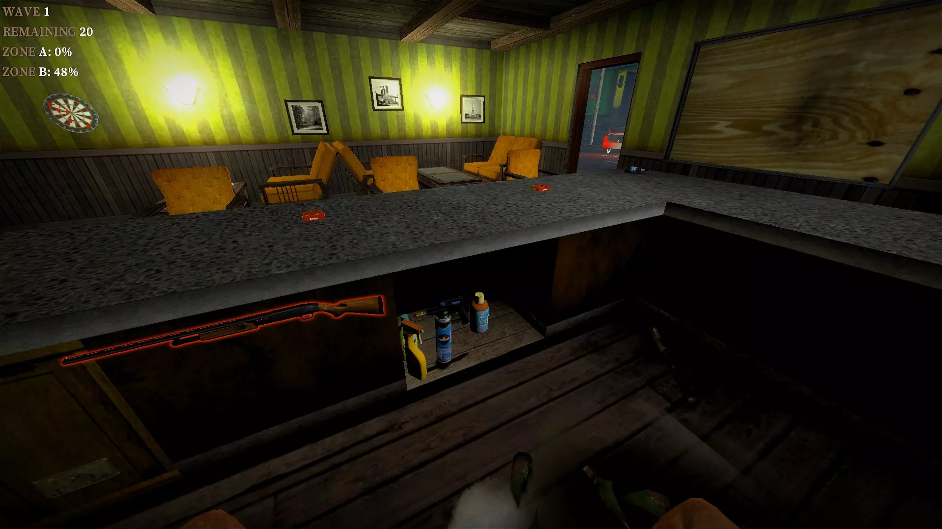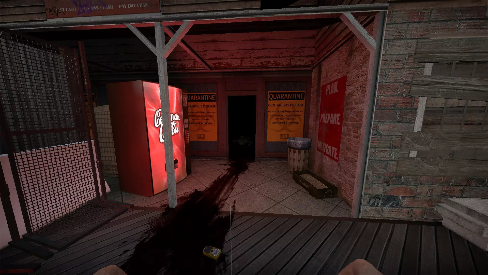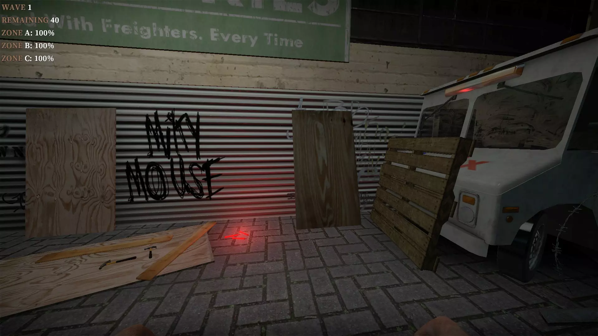 如果你找到穿过商店的路,可以用我的进阶技巧来取下五金店锤子上的木板。装备 barricade hammer( barricade hammer),按住1打开物品栏,按E卸下木板,然后右键点击物品栏中的锤子将其丢弃。这样你就能保留木板并扔掉锤子。如果你尝试按U再按G,这个方法是无效的。