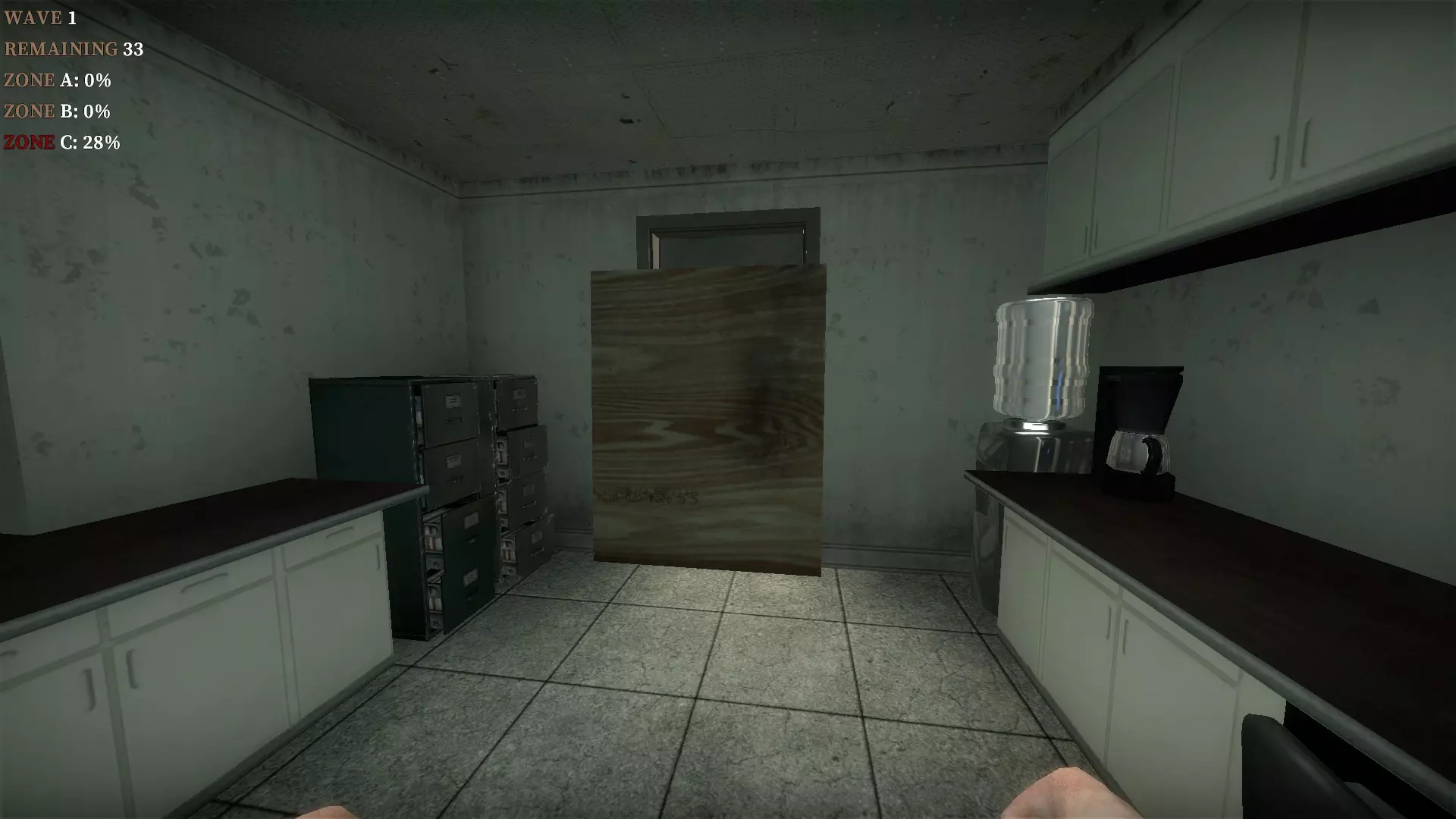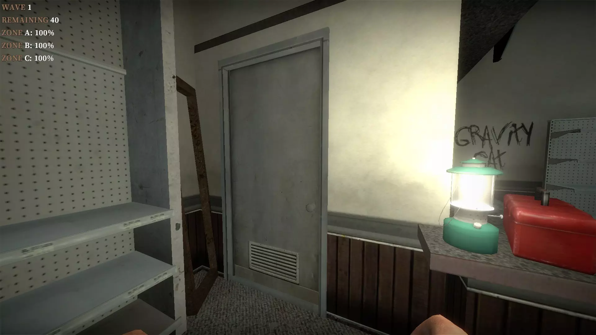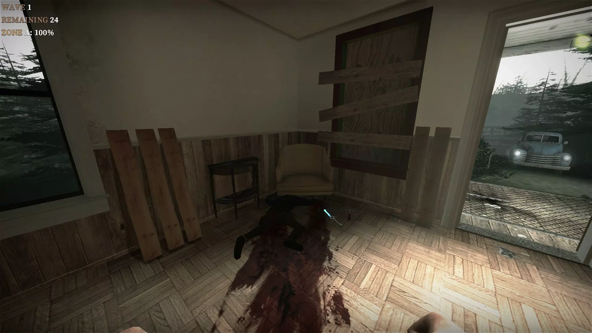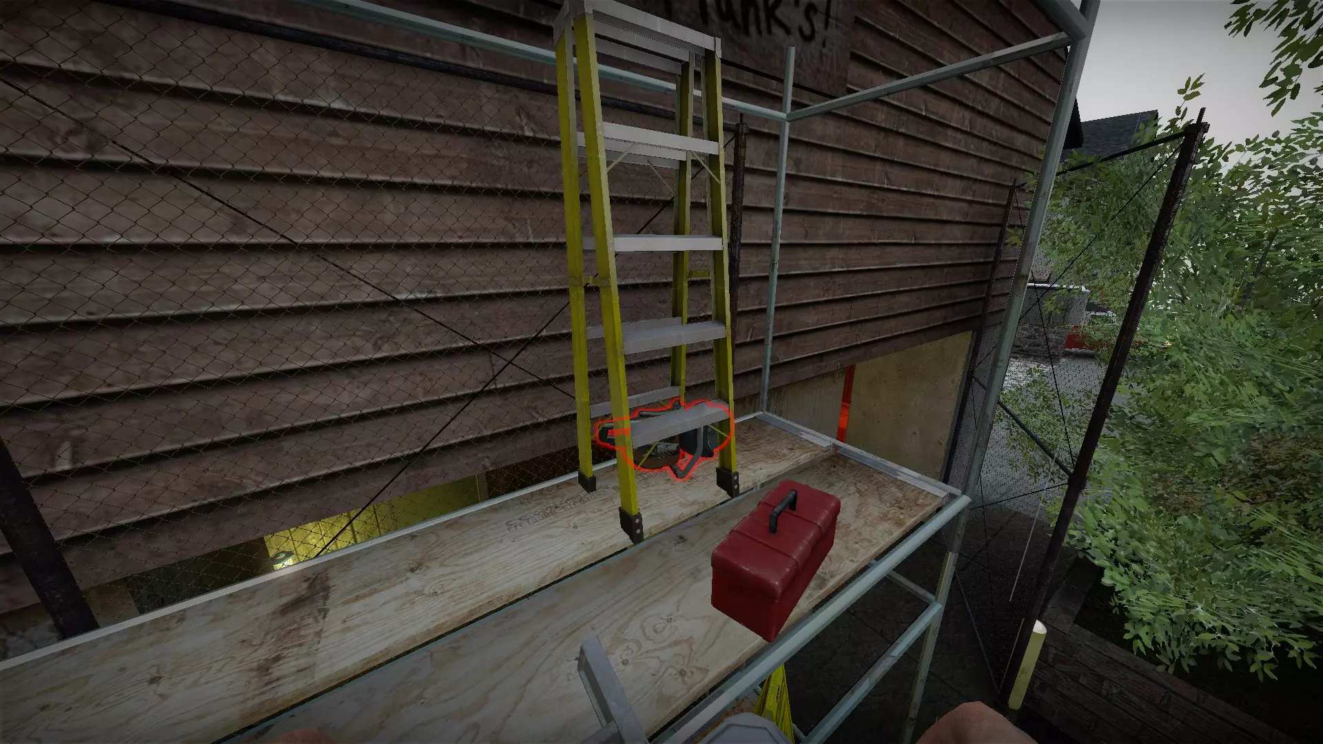如果你找到穿过商店的路,可以用我的进阶技巧来取下五金店锤子上的木板。装备 barricade hammer( barricade hammer),按住1打开物品栏,按E卸下木板,然后右键点击物品栏中的锤子将其丢弃。这样你就能保留木板并扔掉锤子。如果你尝试按U再按G,这个方法是无效的。