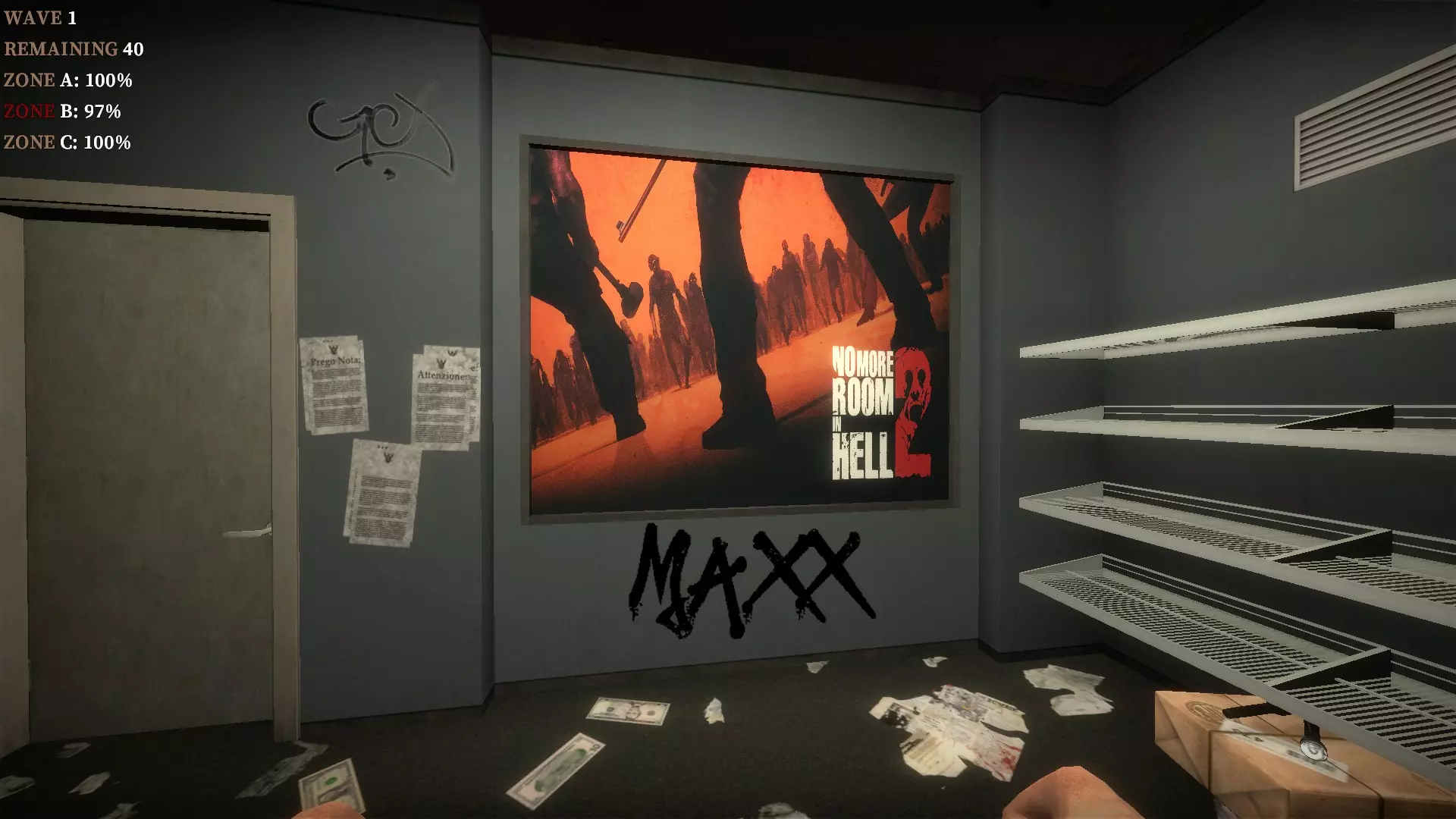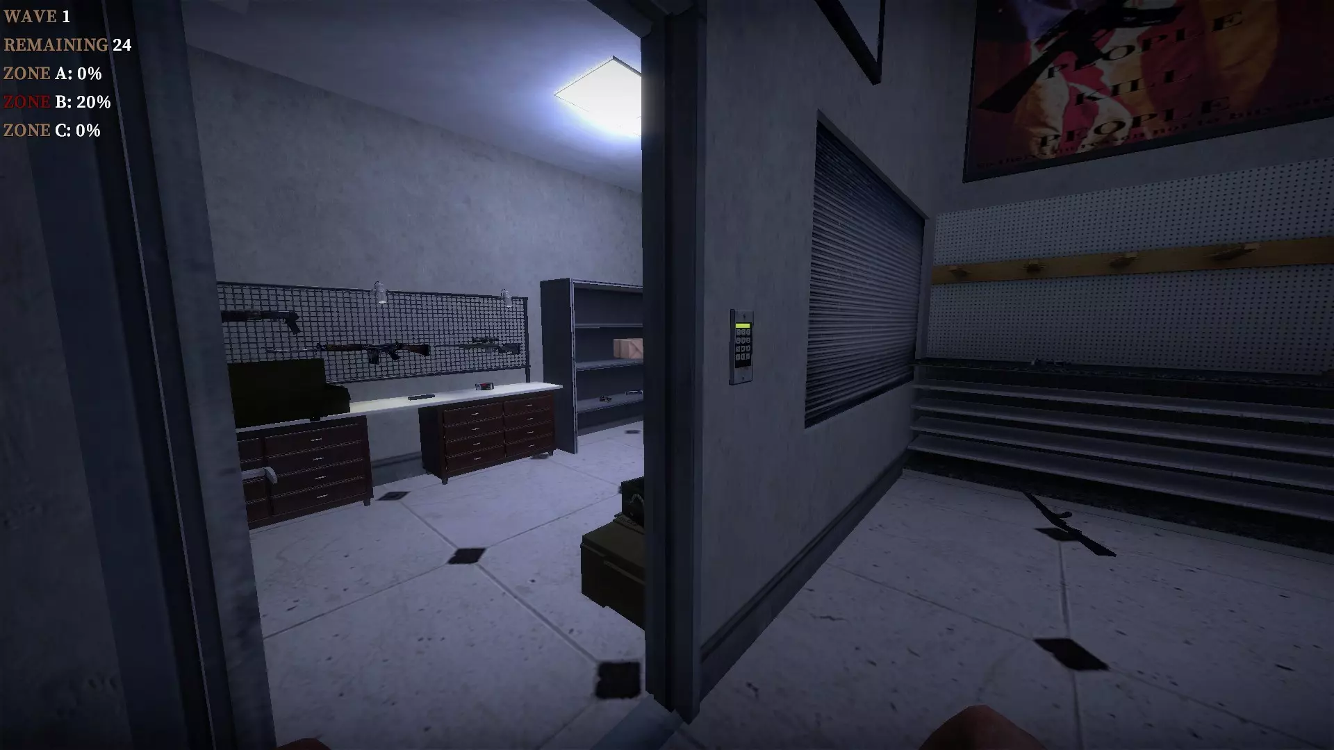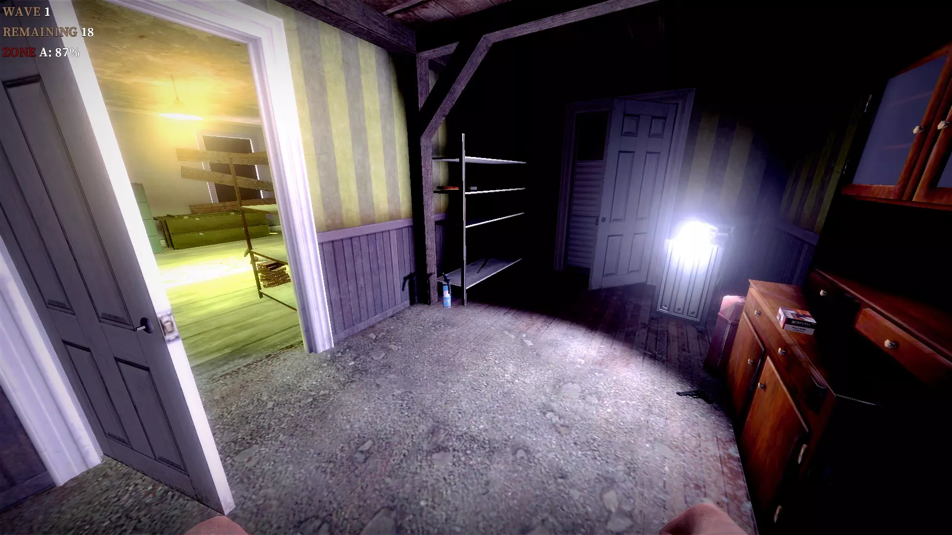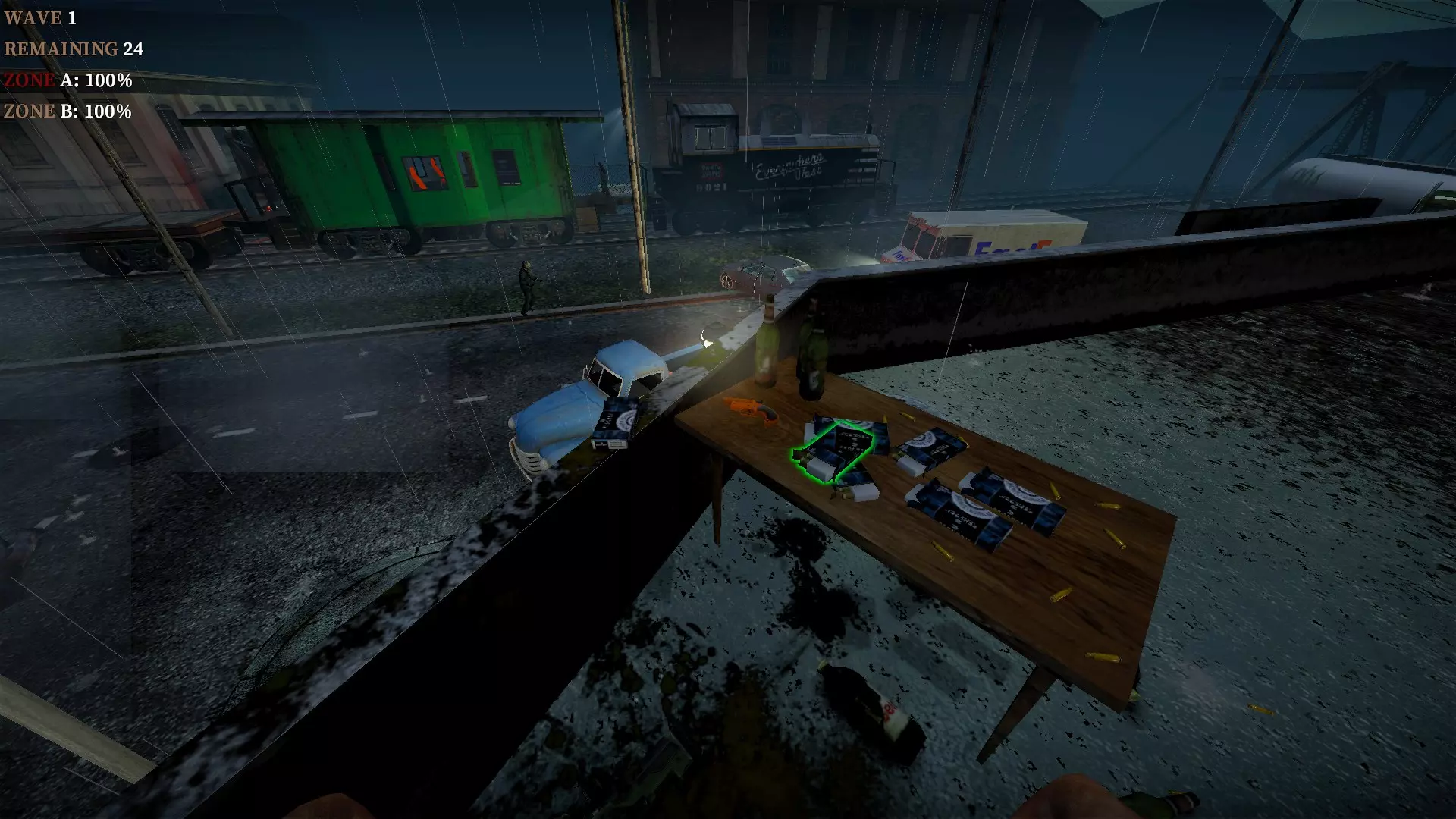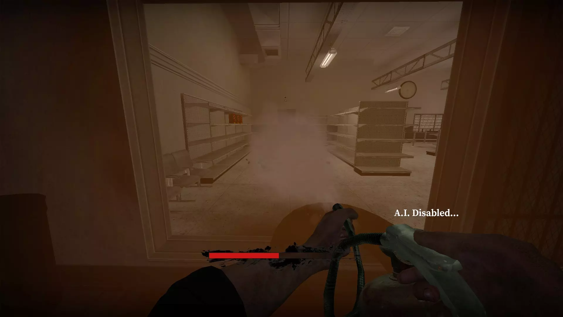 如果你找到穿过商店的路,可以用我的进阶技巧来取下五金店锤子上的木板。装备 barricade hammer( barricade hammer),按住1打开物品栏,按E卸下木板,然后右键点击物品栏中的锤子将其丢弃。这样你就能保留木板并扔掉锤子。如果你尝试按U再按G,这个方法是无效的。