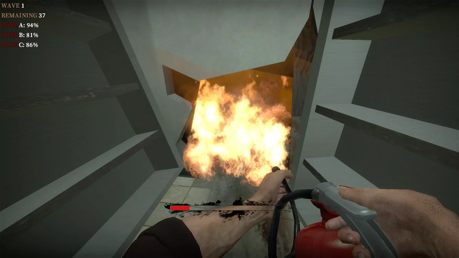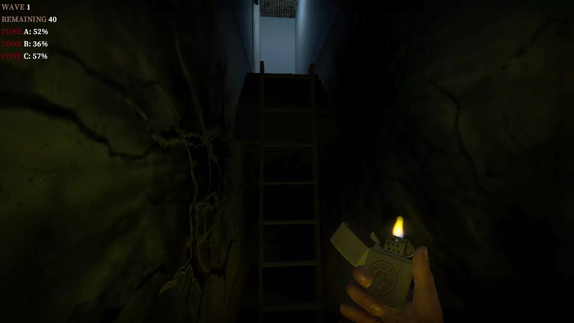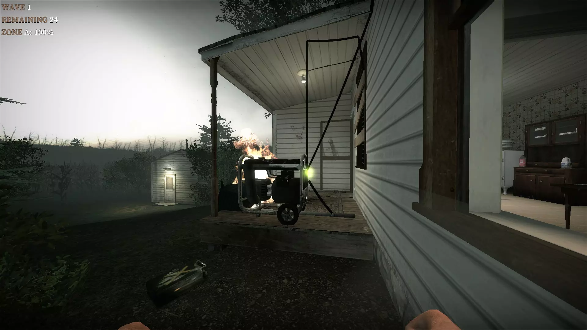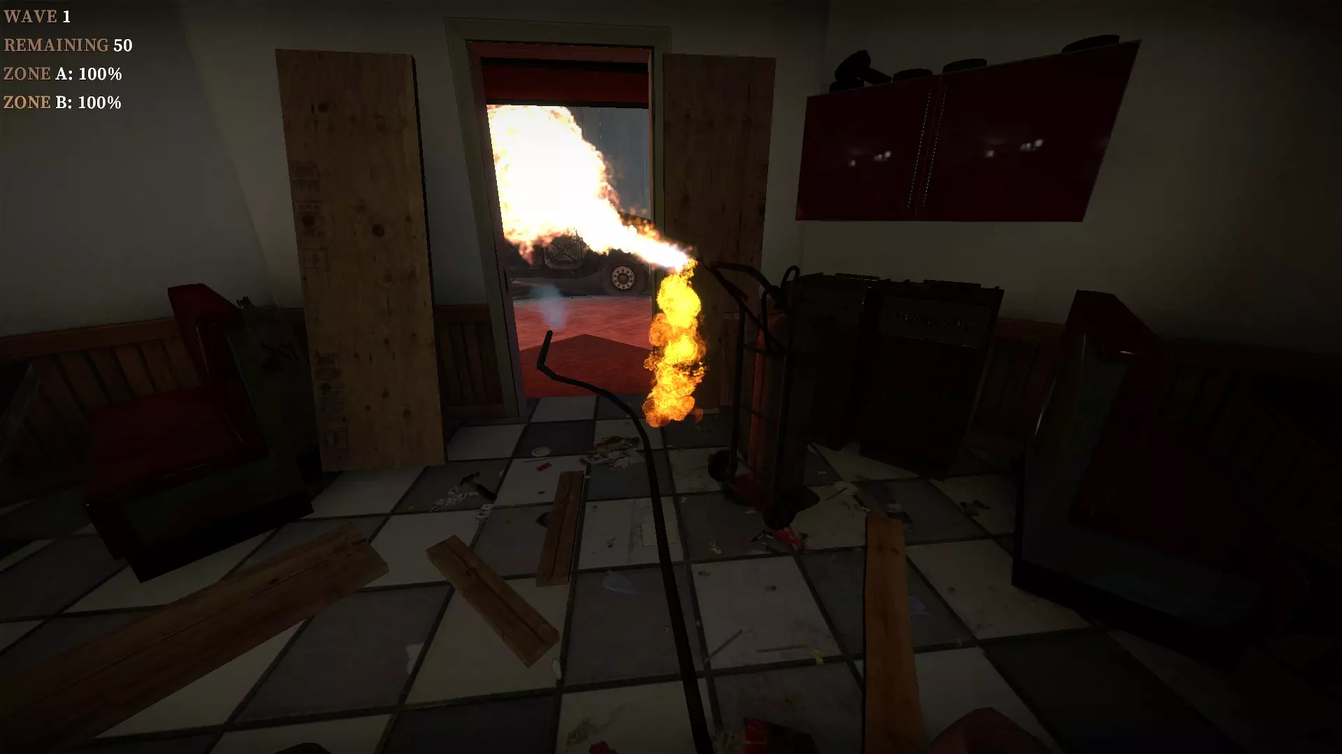在地下室按住E键使用丙烷罐,以焚烧从楼梯下来的僵尸