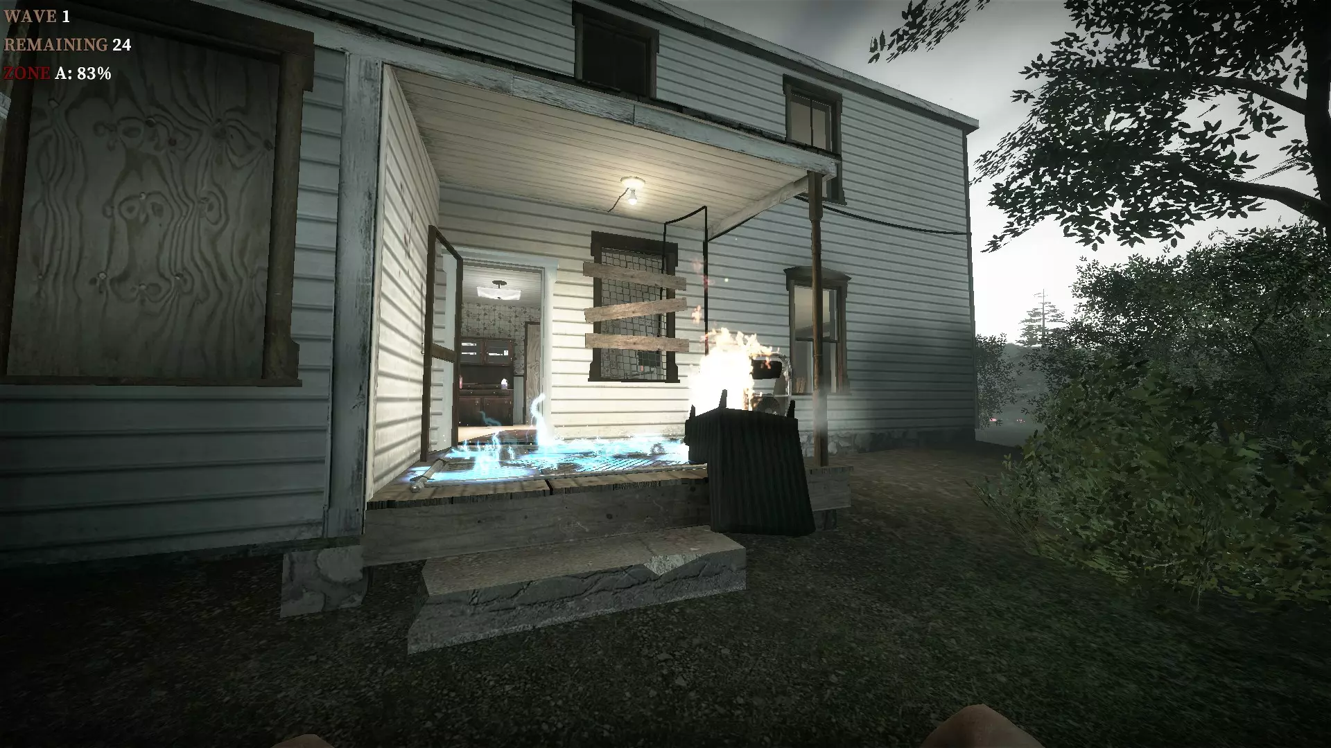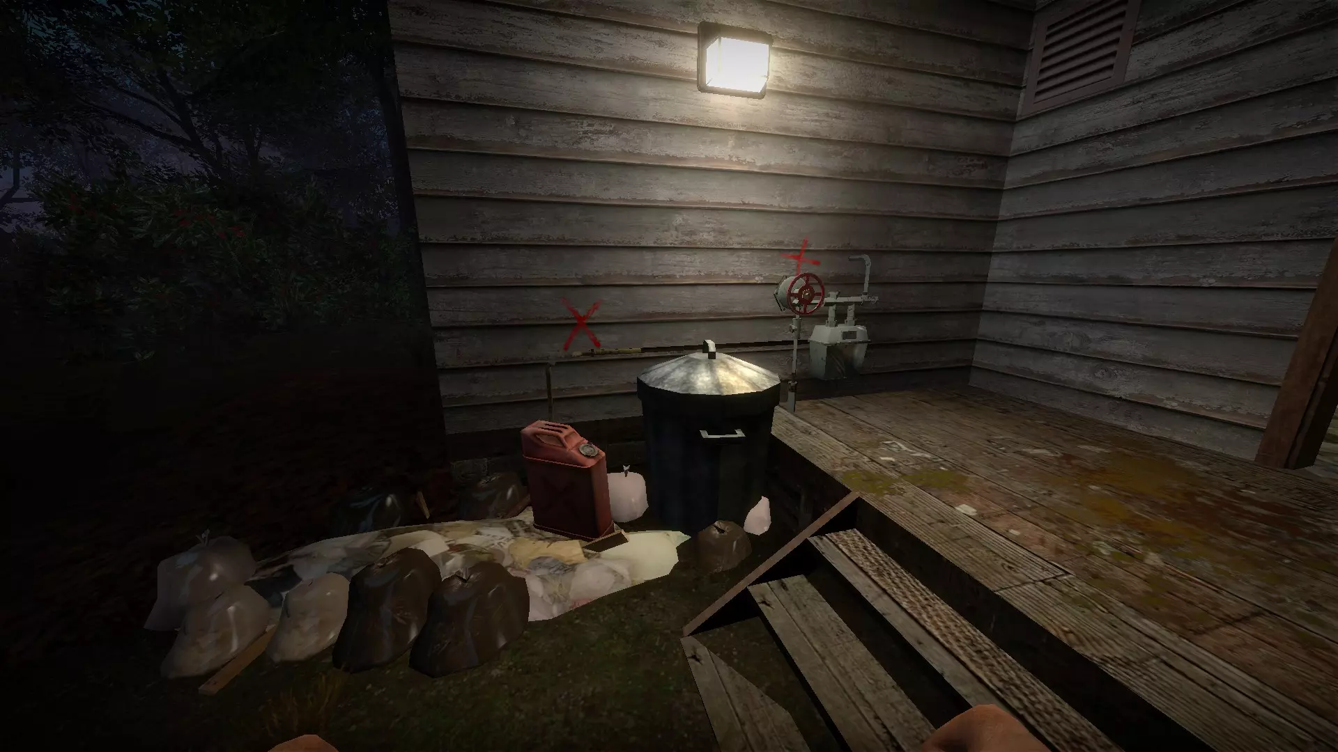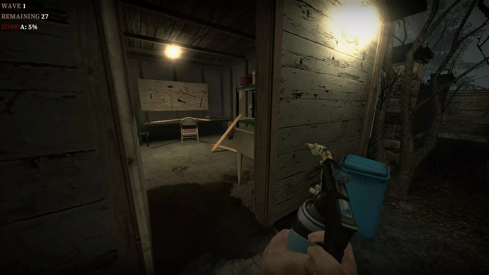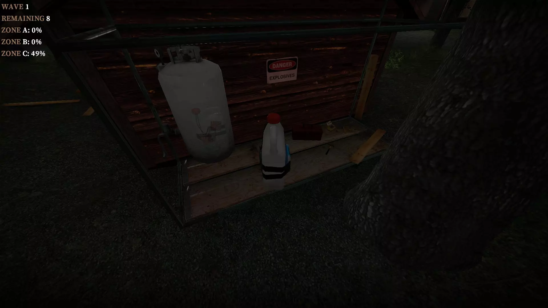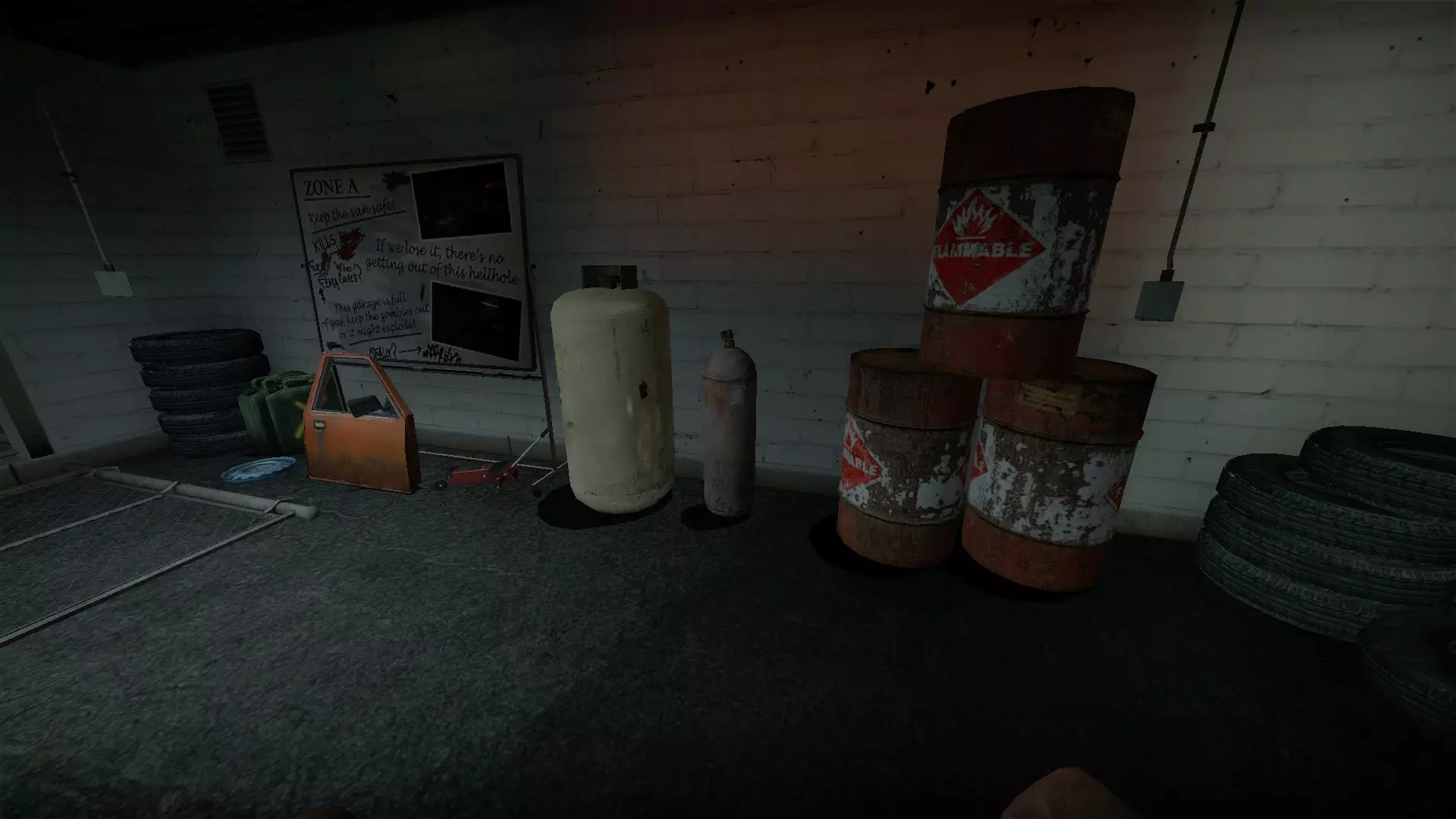 地下室的门可以关闭以阻挡僵尸,但允许玩家进入。丙烷罐陷阱