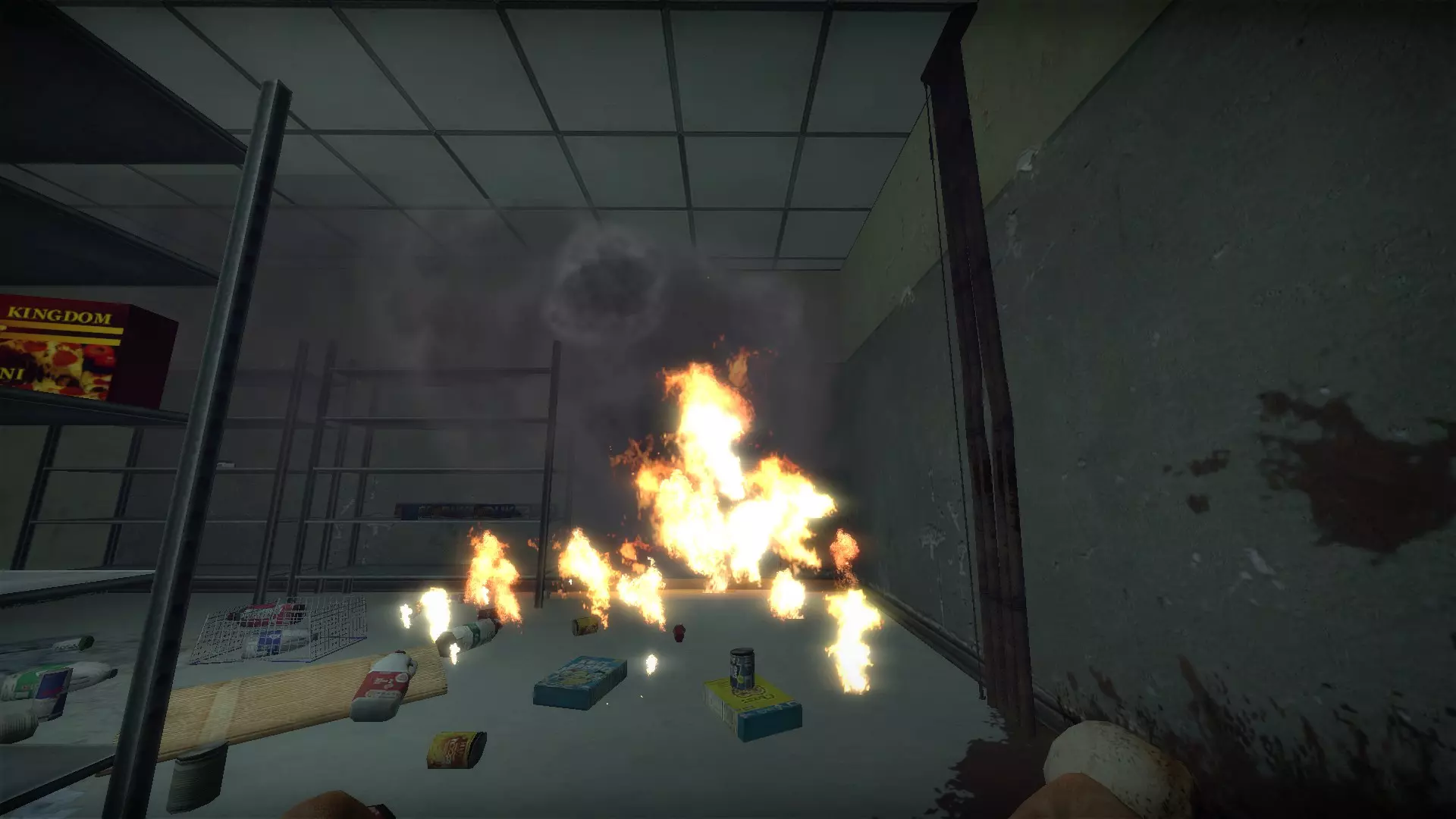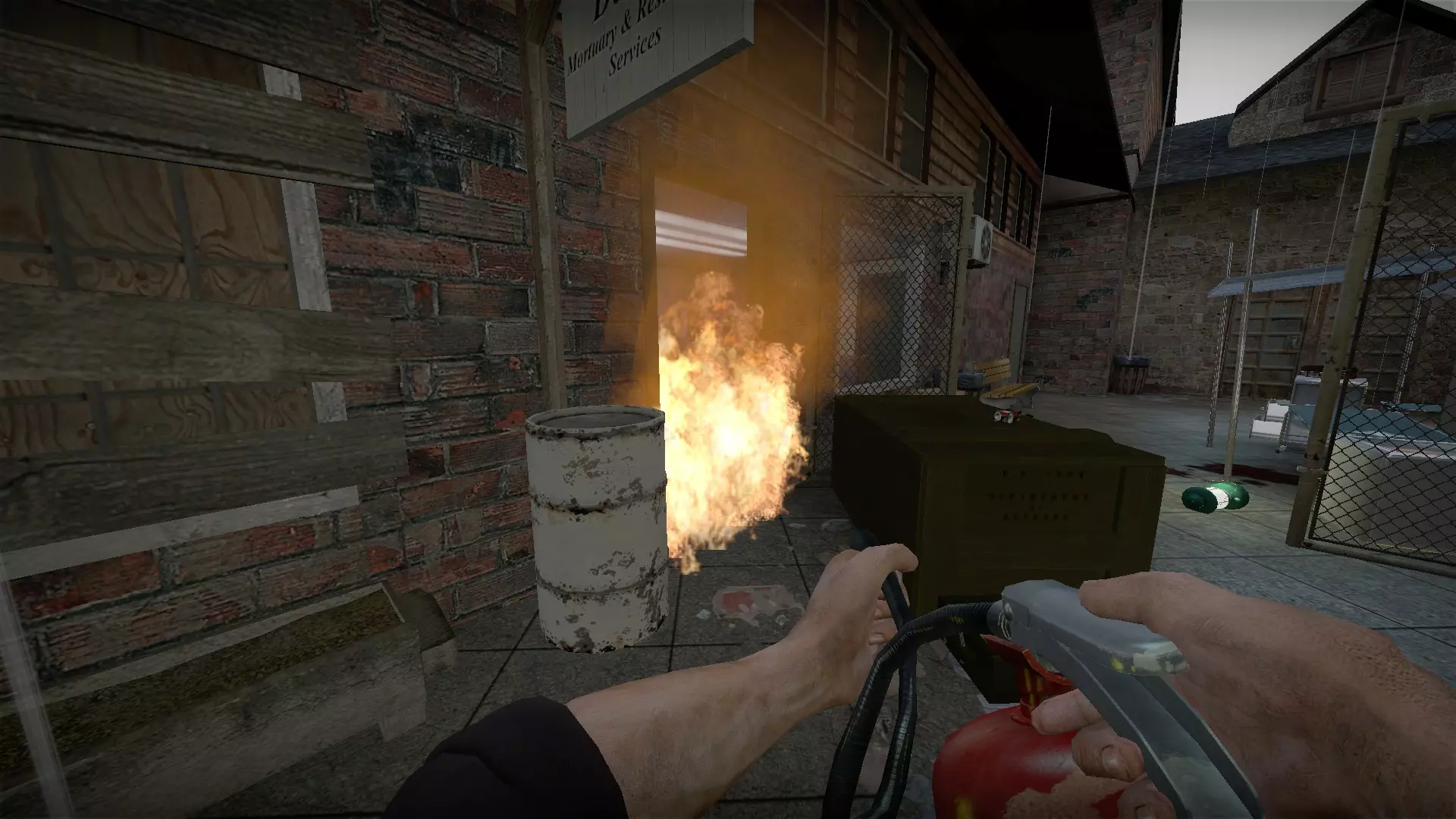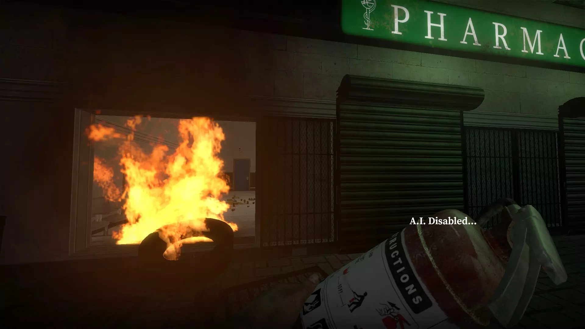 只需按下商店前方燃烧汽车旁油桶上的E键,它就会点燃商店前方的区域。