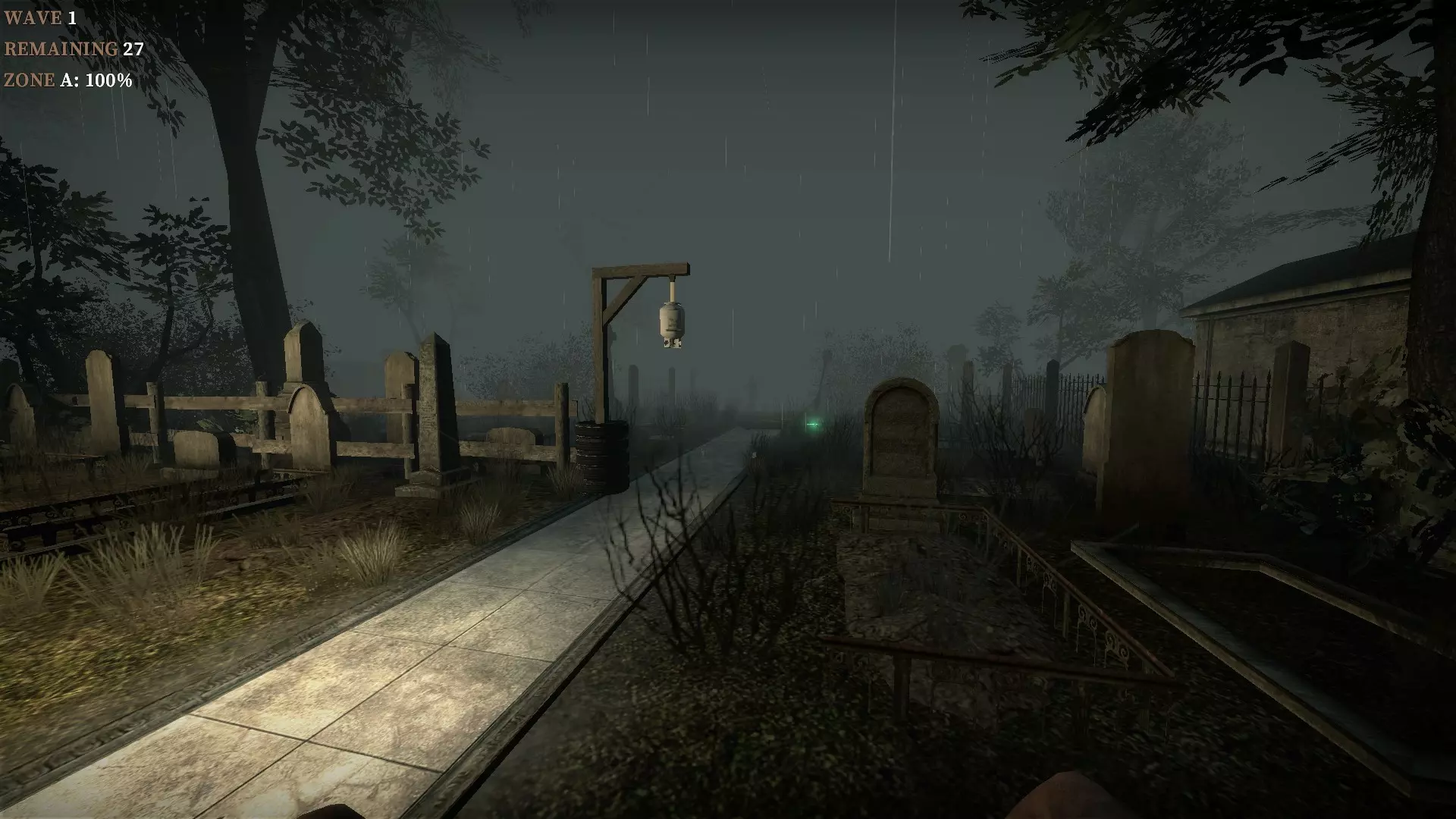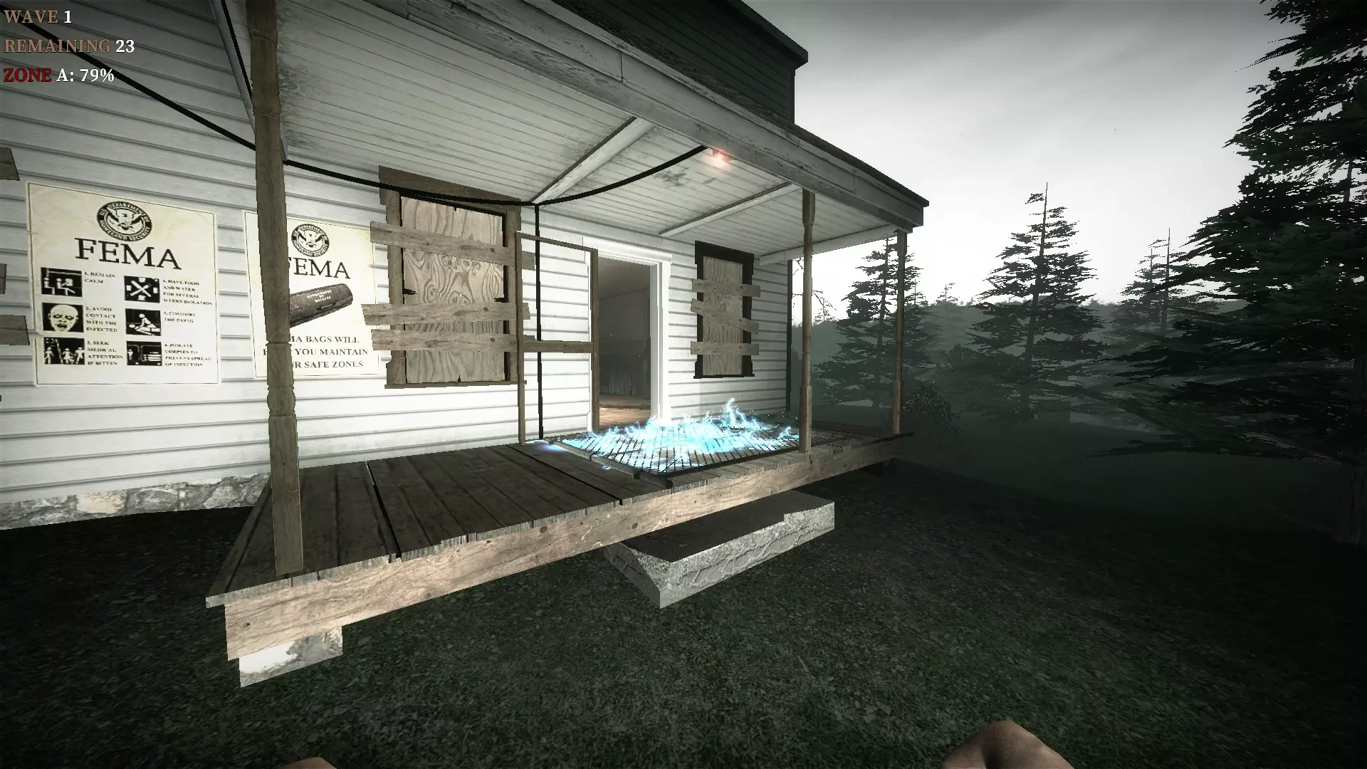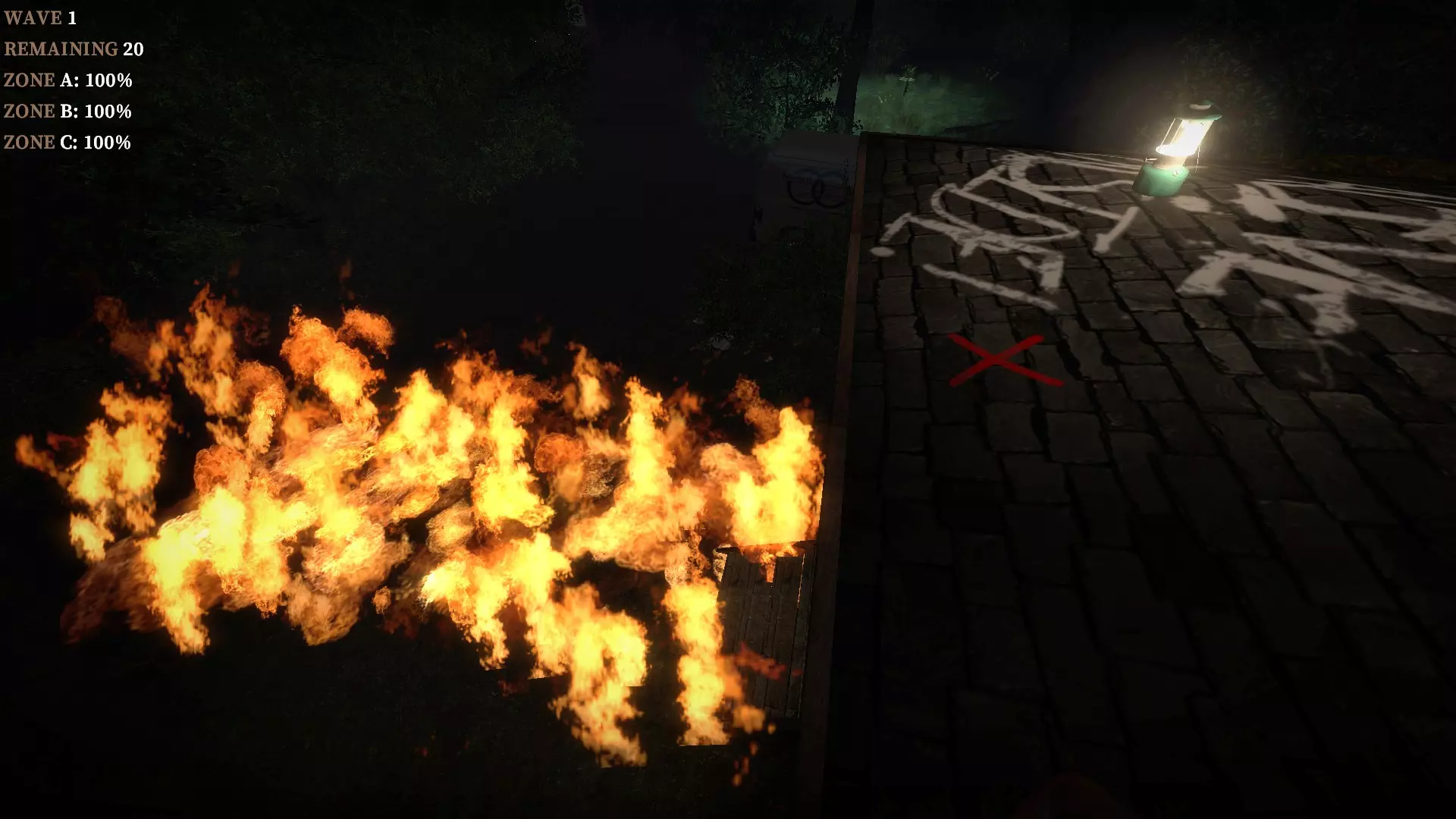 在教堂后面的陷阱上按住E键,它就会焚烧从人行道接近的僵尸。