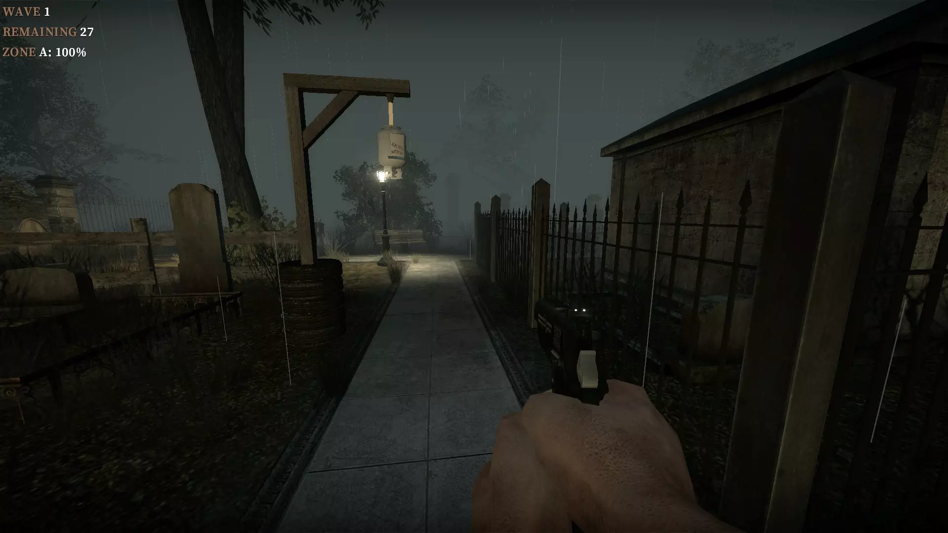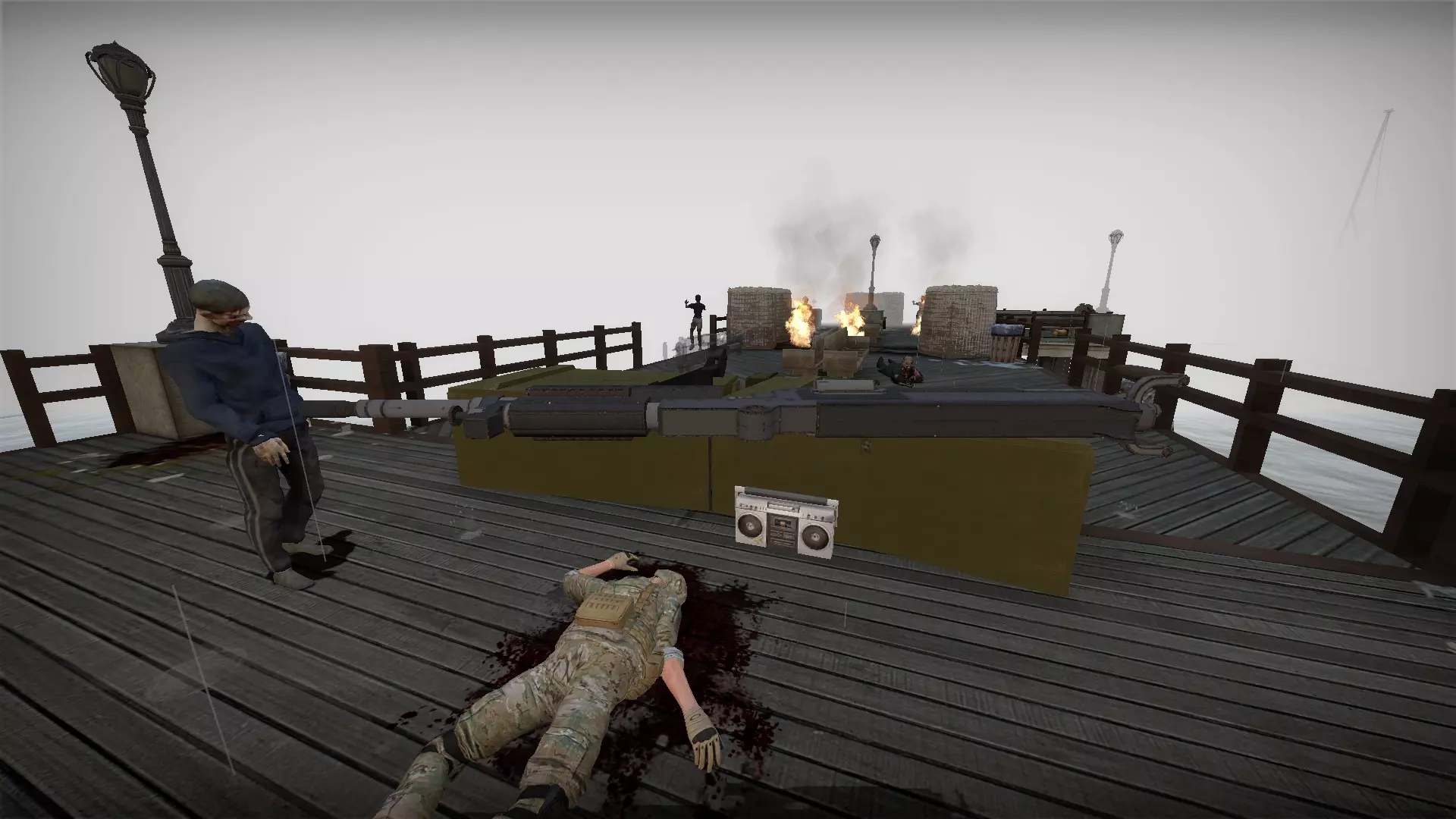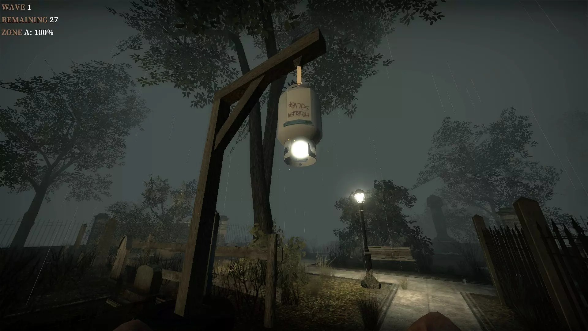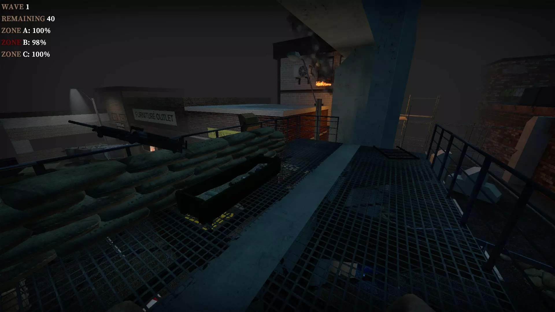 在教堂后面的陷阱上按住E键,它就会焚烧从人行道接近的僵尸。