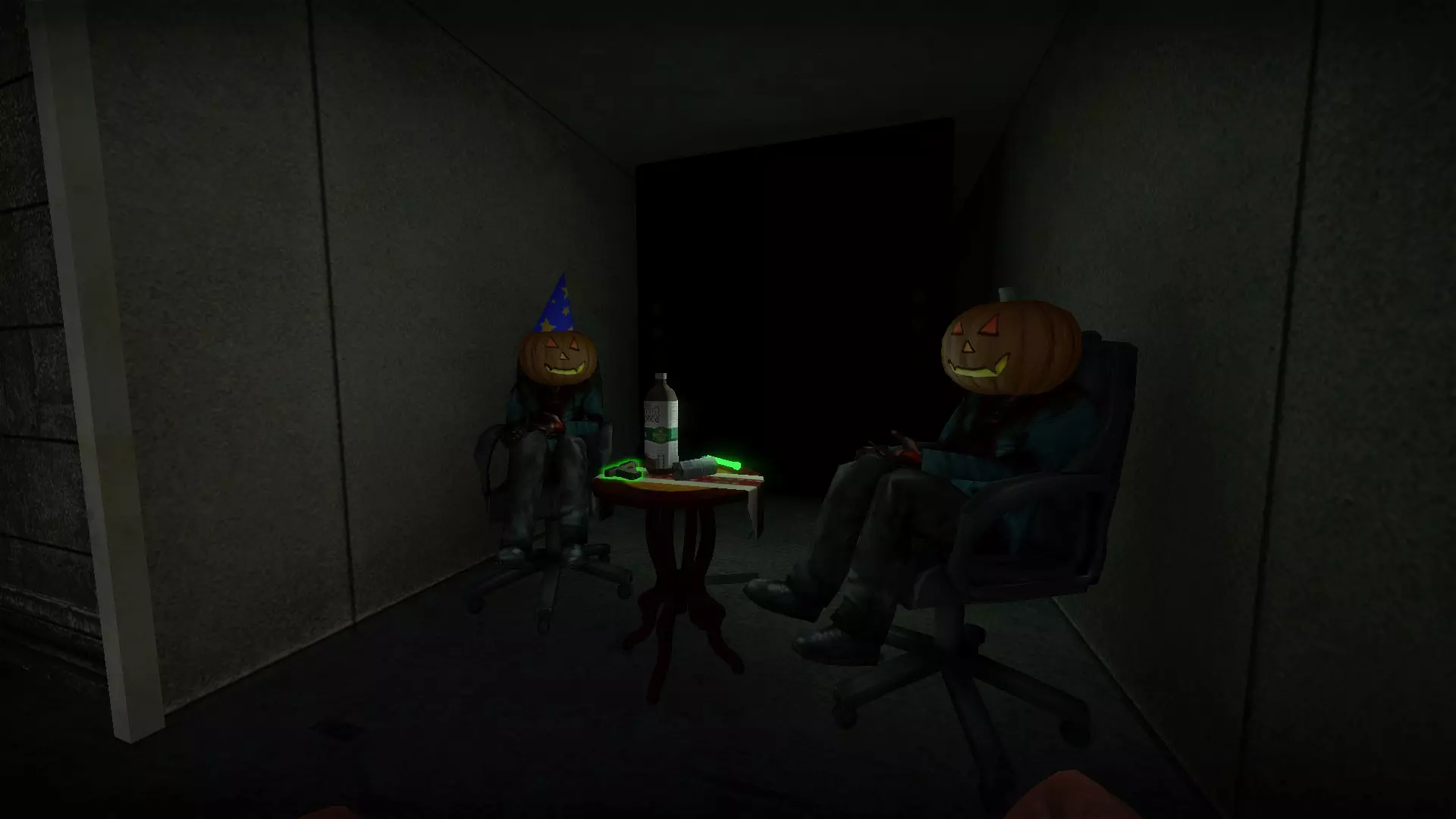 3 - 在最后一个房间正后方的医务室里。只有当绿色钥匙刷新在这里时你才能拿到它,否则门会是锁着的。当你打开储物柜时,南瓜头会转头看向你。