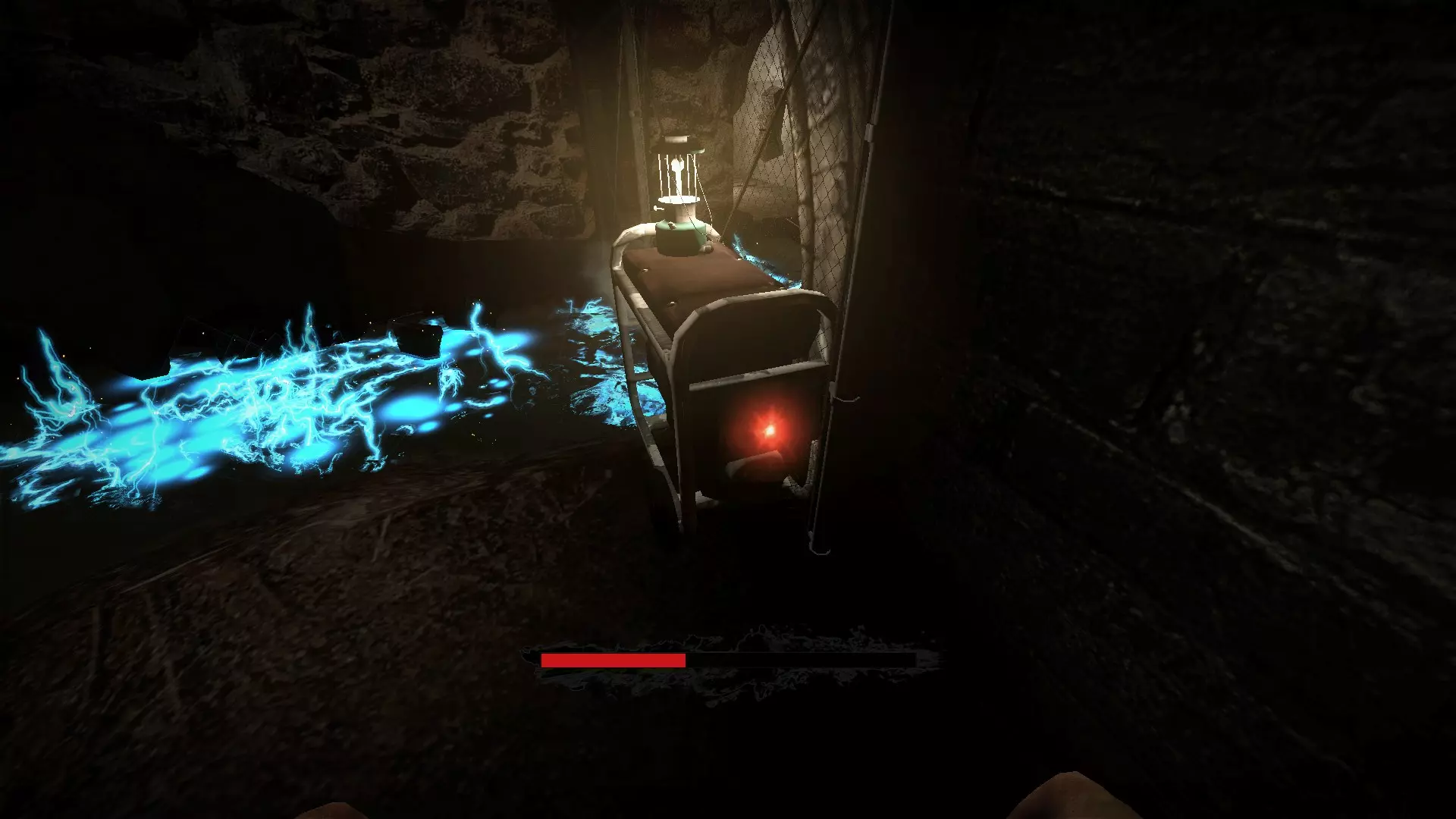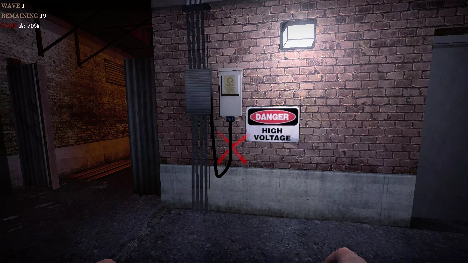 要激活商店后方的陷阱,需按E键操作高压箱,然后将产生火花的电线放入附近的水坑使其带电 地下室钥匙