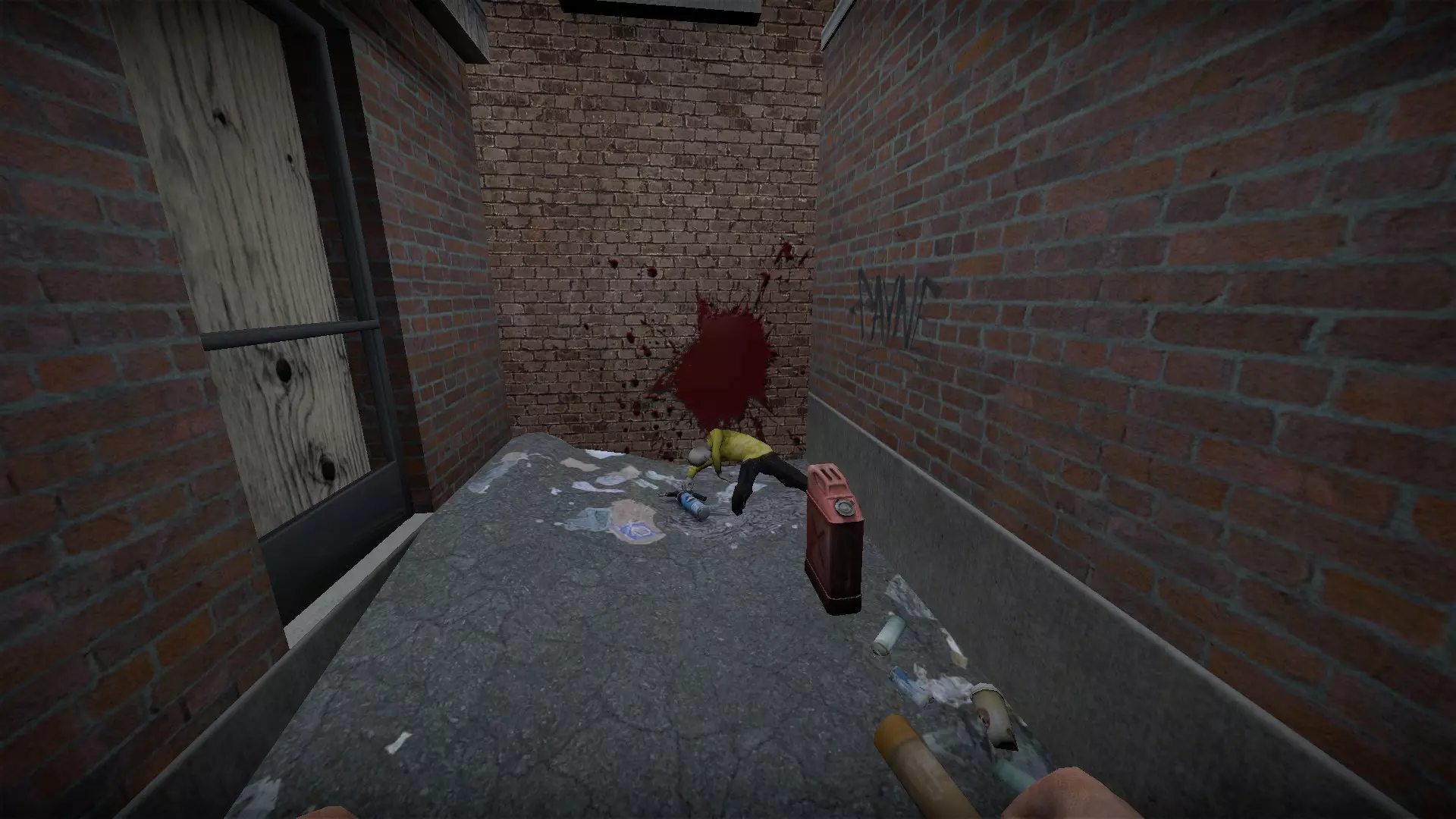 3 - 在商店后面的小巷里,悬挂的尸体旁边