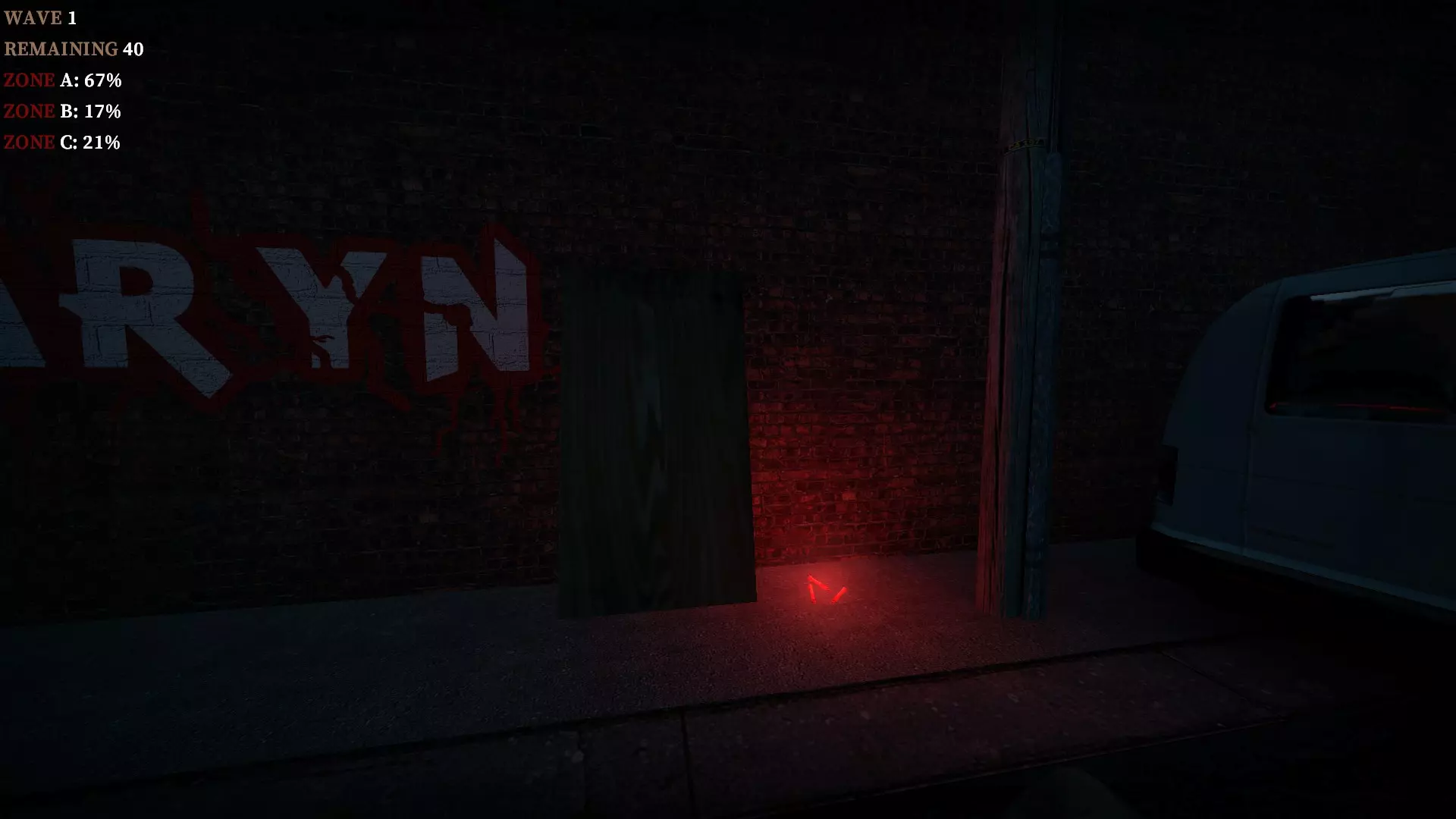 3 - 在停车场的墙上,被面包车的灯光照亮