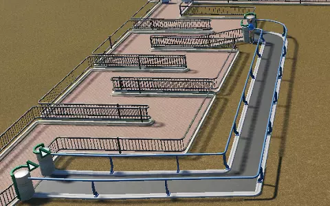 接下来,用路径和排队线路将大门与公园路径连接起来。如果你想绘制比我使用的网格风格更自由的排队线路,请记住,排队线路的起点和终点附近需要有一段相当直的部分。
