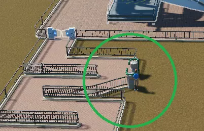 接下来你需要建造优先通行出口。你应该将其放置在靠近游乐设施的排队区域。