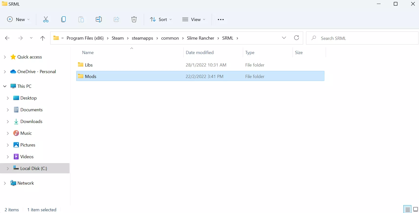 SRML文件夹中有两个子文件夹:Libs和Mods。Mods文件夹是你后续放置模组文件的位置。